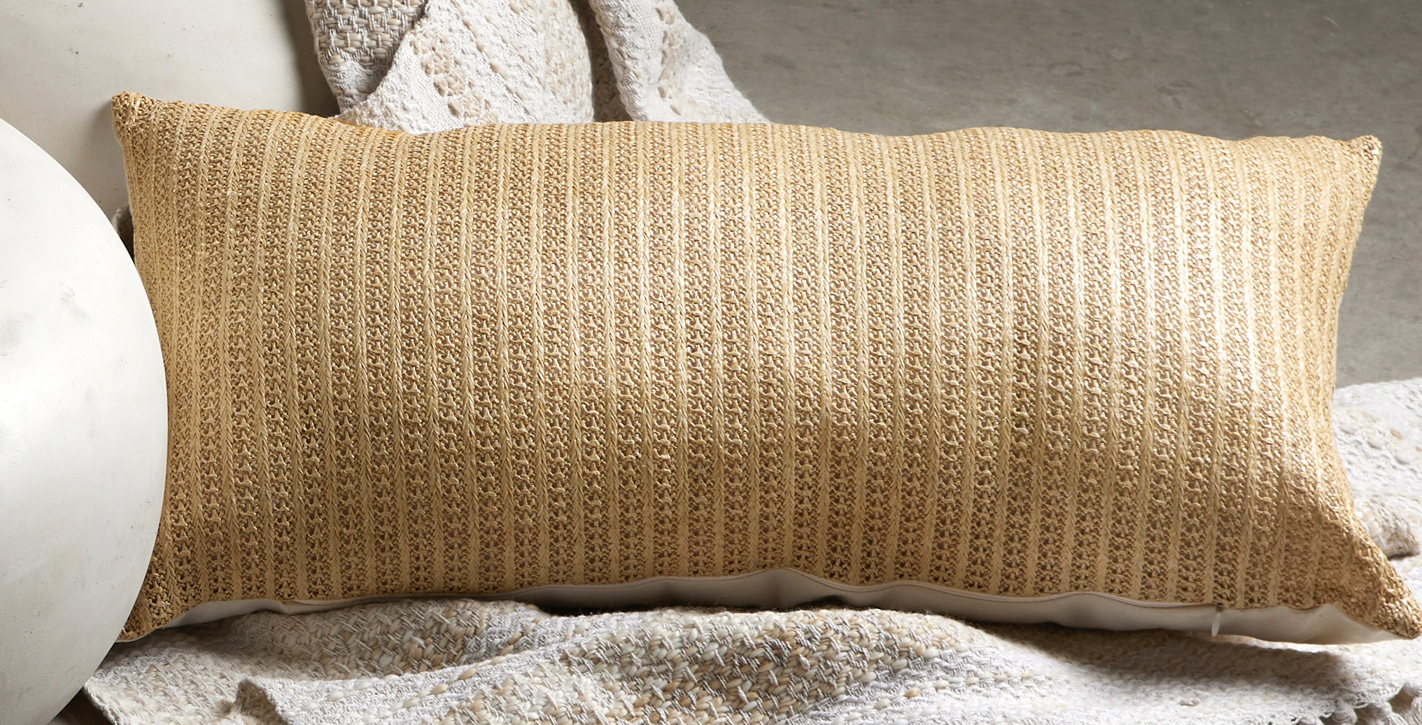 Com um padrão em espiga e tons suaves, esta almofada é o complemento perfeito para renovar a sua decoração com estilo e conforto.