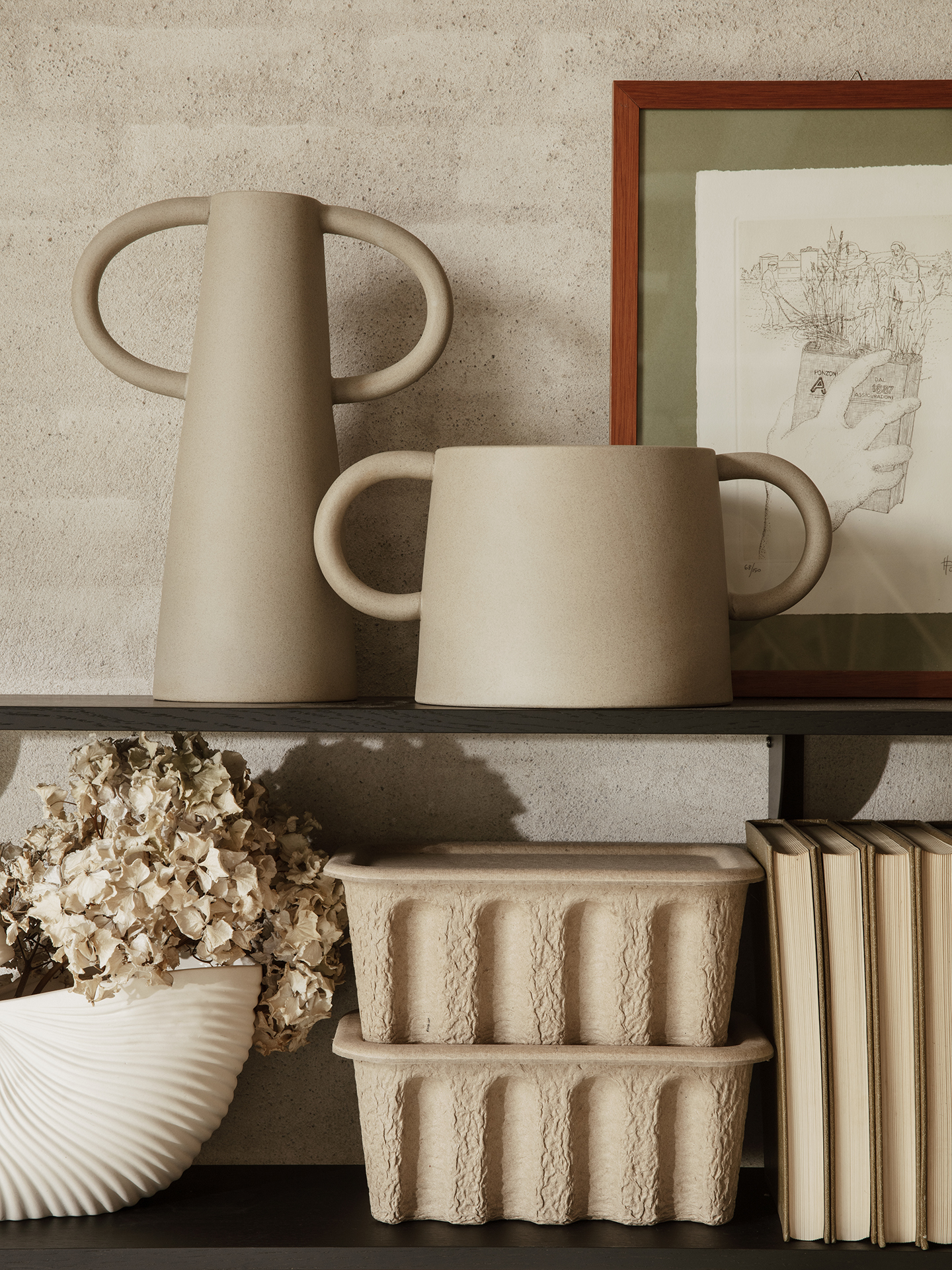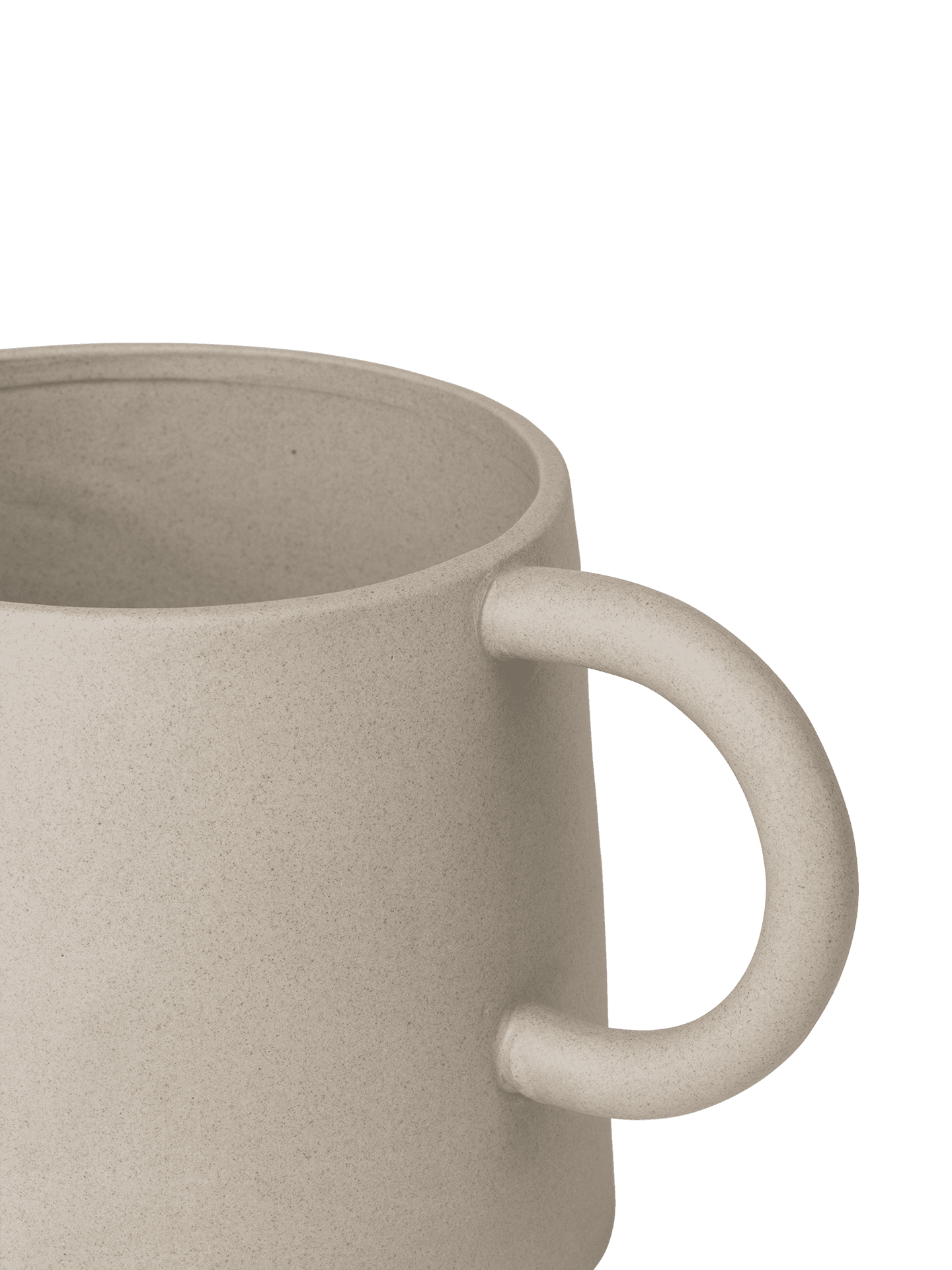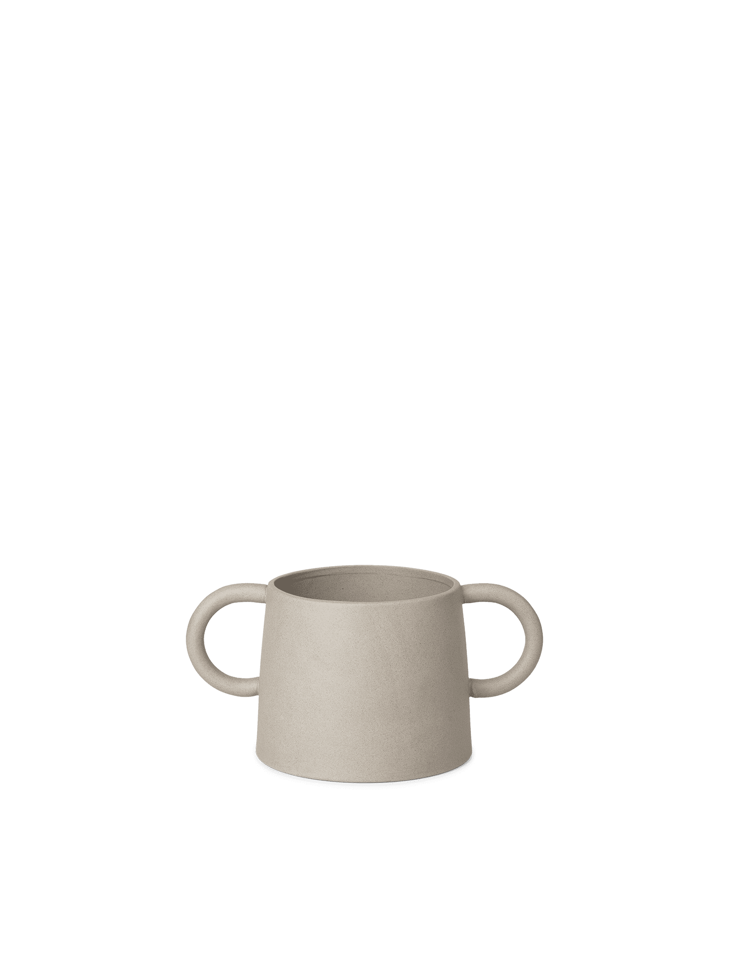 Passado e presente fundem-se no Anse Pot. Feito de um barro rústico especial, a cor da areia crua do pote e a textura áspera é agradavelmente contrastada pela sua forma cilíndrica e limpa. Um conjunto de alças feitas à mão lembrando a cerâmica tradicional completa a expressão unificada.