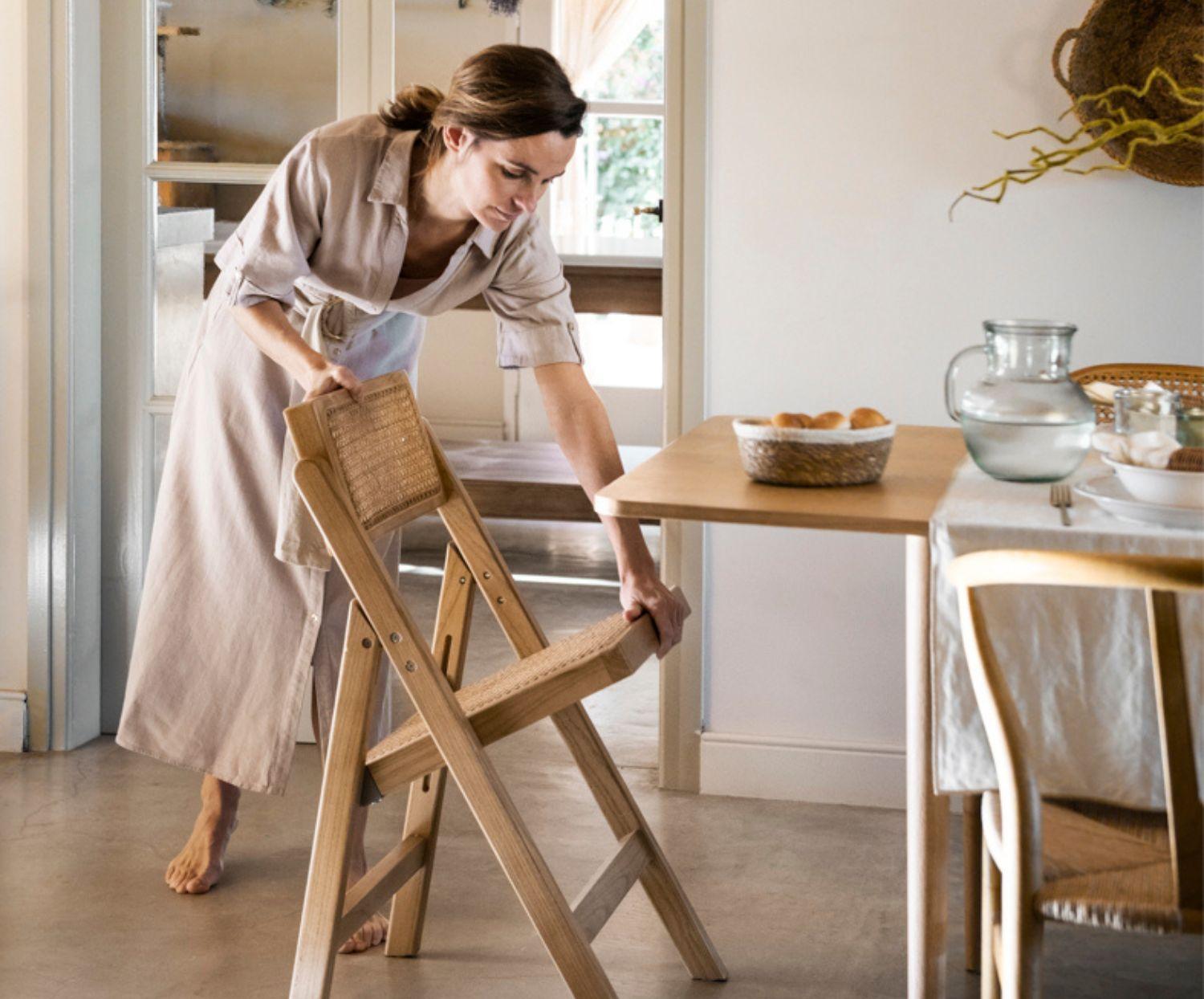 A cadeira dobrável ratan, torna espaços reduzidos, como espaços de refeição ou cozinhas, em locais perfeitos para receber convidados. E ainda há mais! É dobrável, ocupando assim menos espaço quando guardadas.