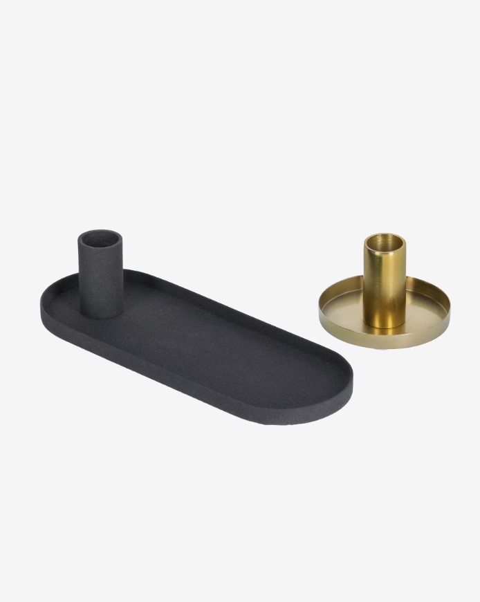 Se pretende criar o ambiente perfeito em sua casa, pegue em duas velas, coloque-as neste conjunto e o resultado será um estilo indiscutível. Dois candelabros de metal, de diferente cor e tamanho, para apresentar juntos ou separadamente. O design nas suas mãos.