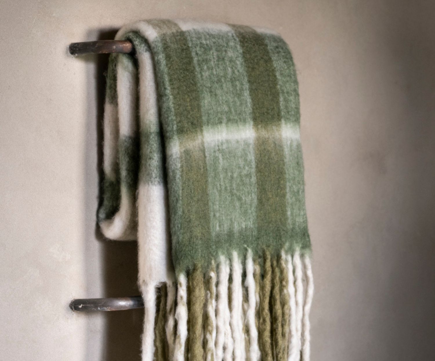 Esta manta de sofá é feita de lã, poliéster e acrílico num padrão elegante xadrez branco e verde. Destaca a sua suavidade, durabilidade e charme distintivo que traz o design inspirado na tradição cultural escocesa. A combinação de materiais garante uma suavidade incomparável e um calor natural. A manta é perfeita para usar no sofá ou na cama.