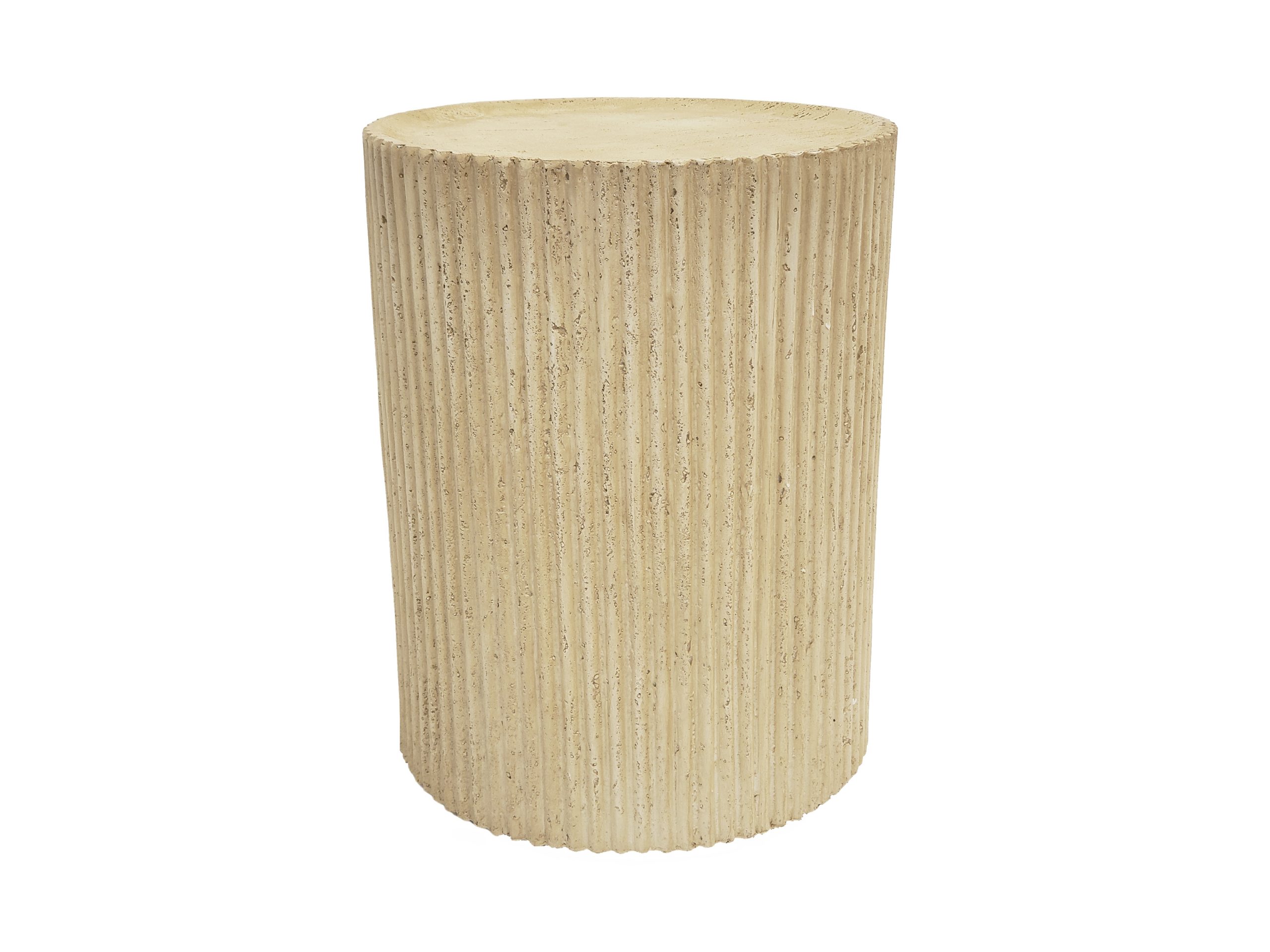 A Mesa Auxiliar Cilíndrica Traverti combina sofisticação e funcionalidade num design minimalista e atemporal. Com um acabamento texturizado e tonalidade natural, esta peça adapta-se perfeitamente a ambientes contemporâneos e sofisticados. Ideal para quem procura um toque de elegância sem abrir mão da versatilidade.
