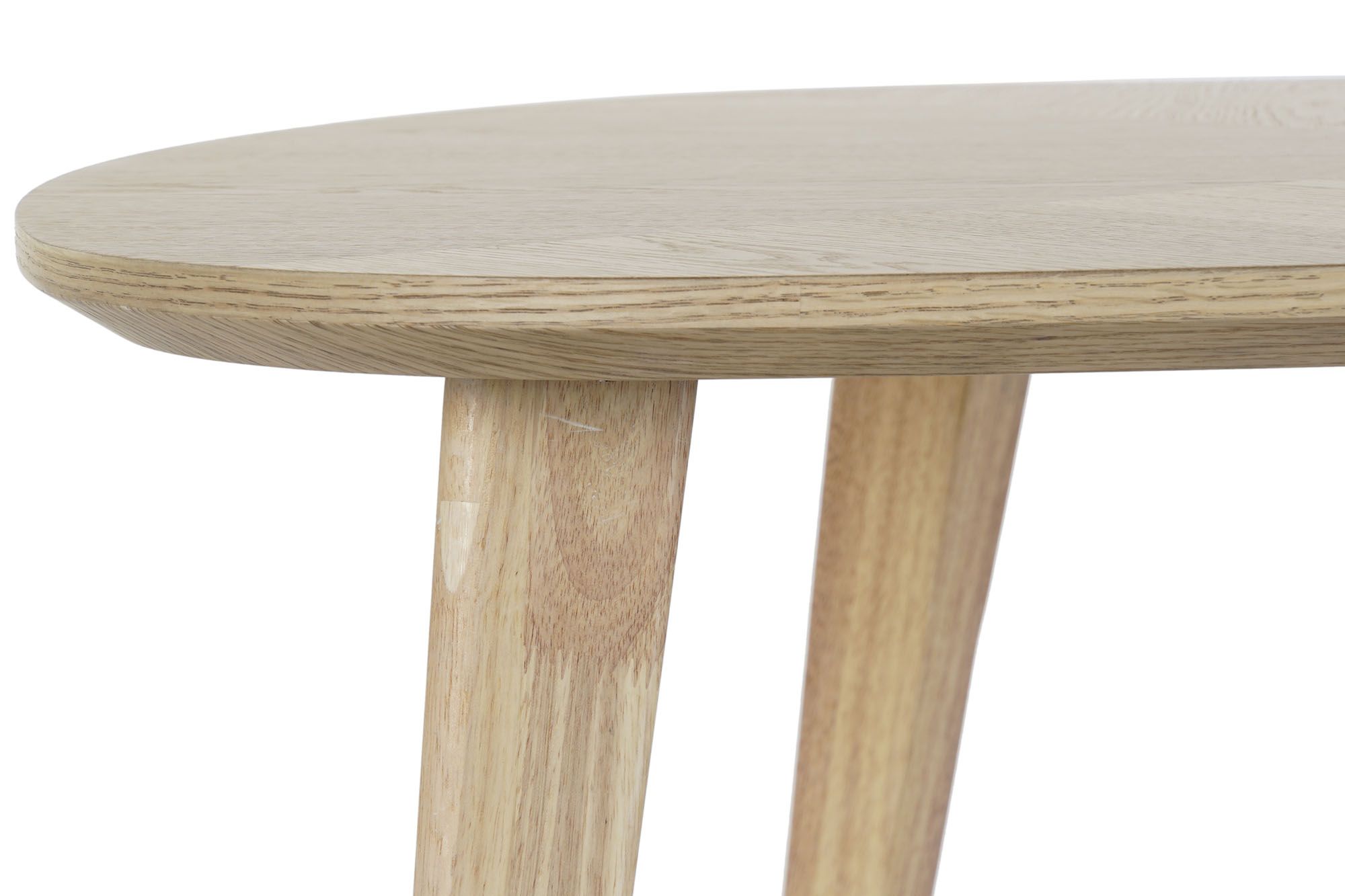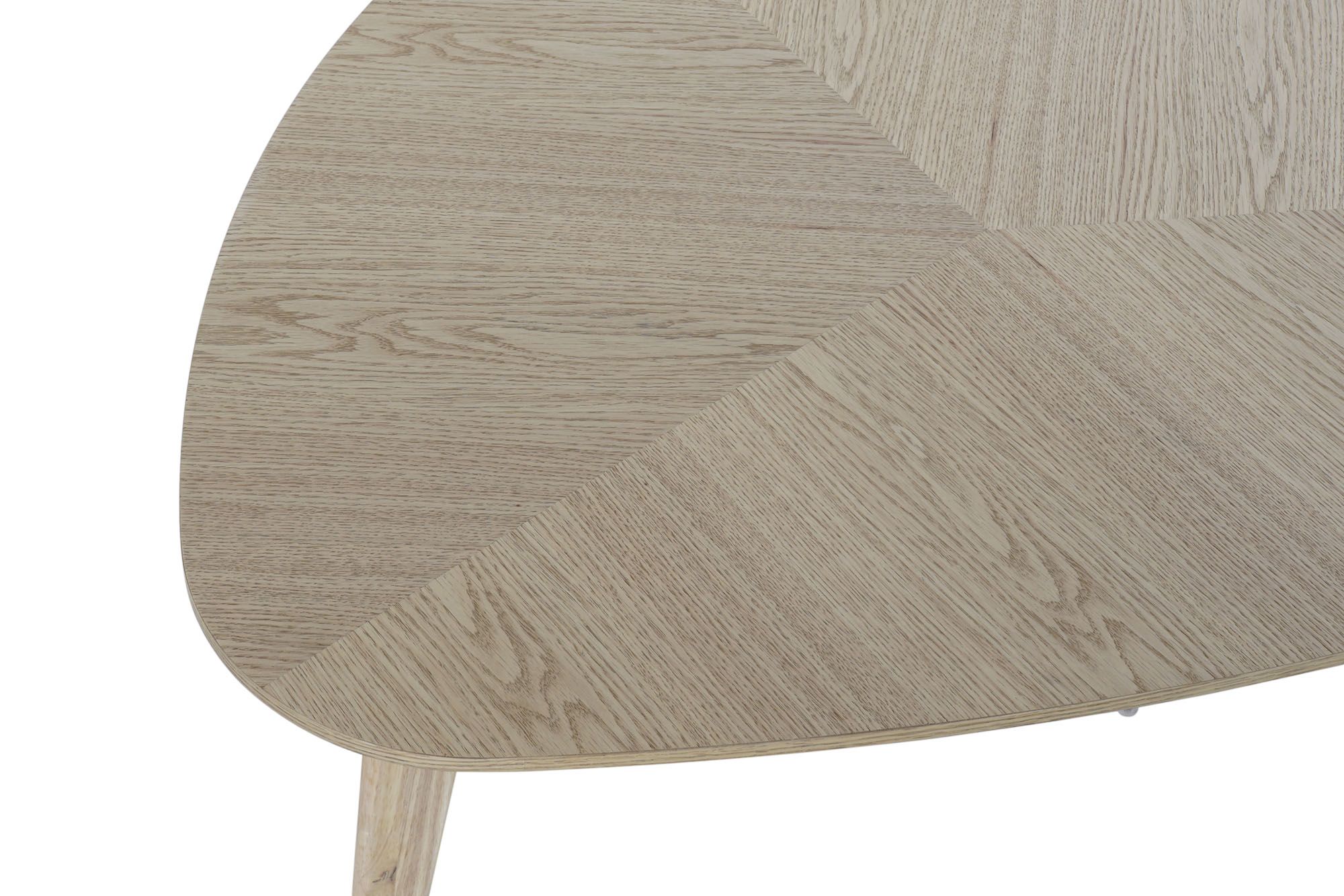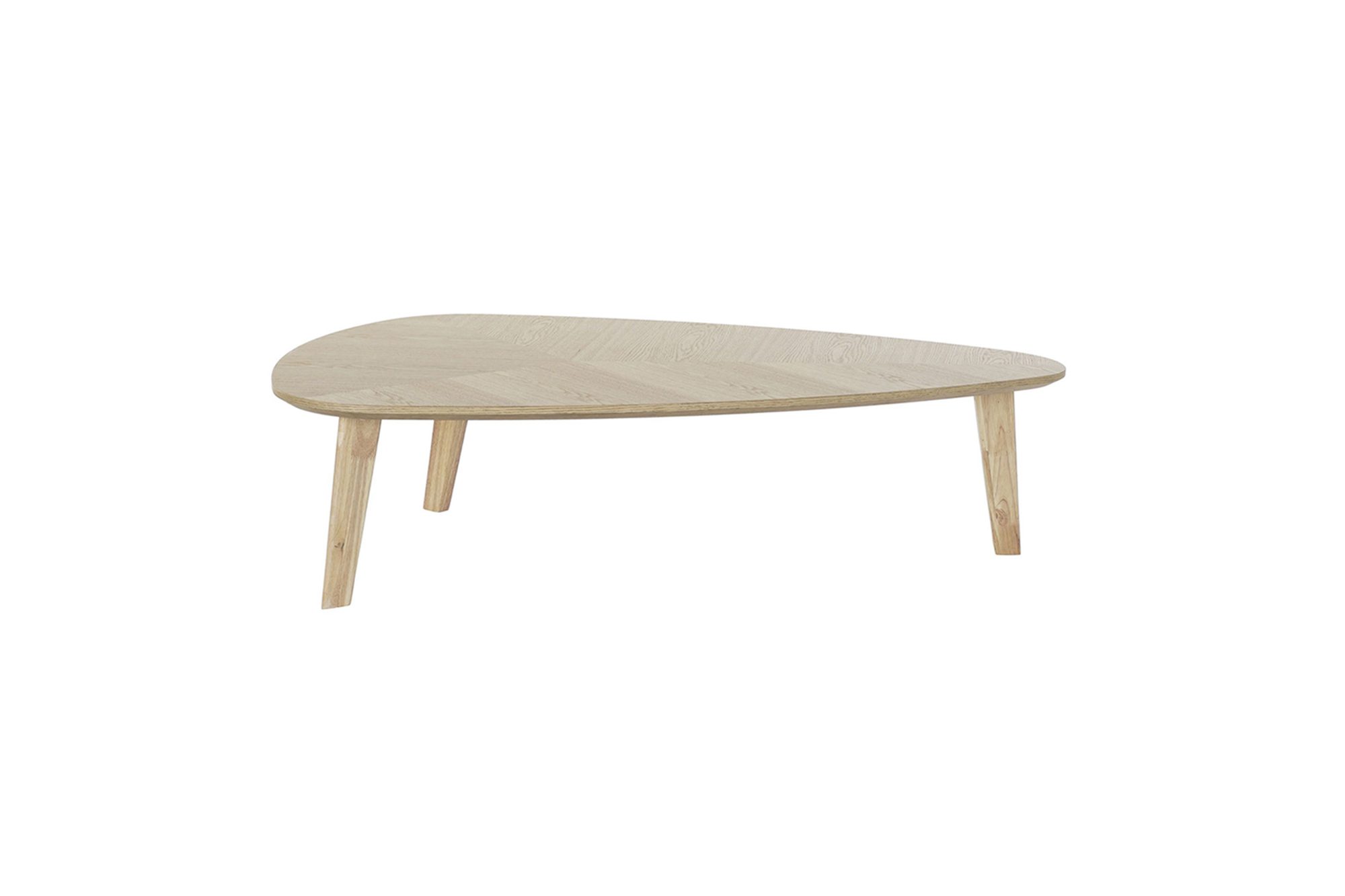 Mesa de centro em madeira clara e metal.