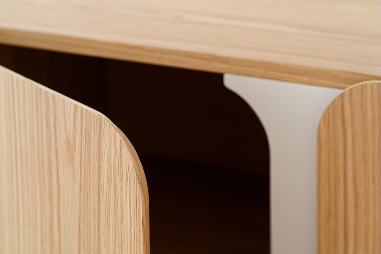 Elegância e durabilidade em perfeita sintonia com SHAPE. Este móvel apresenta um design delicado e subtil, feito em madeira de carvalho, dando um toque de aconchego e sofisticação a qualquer ambiente.