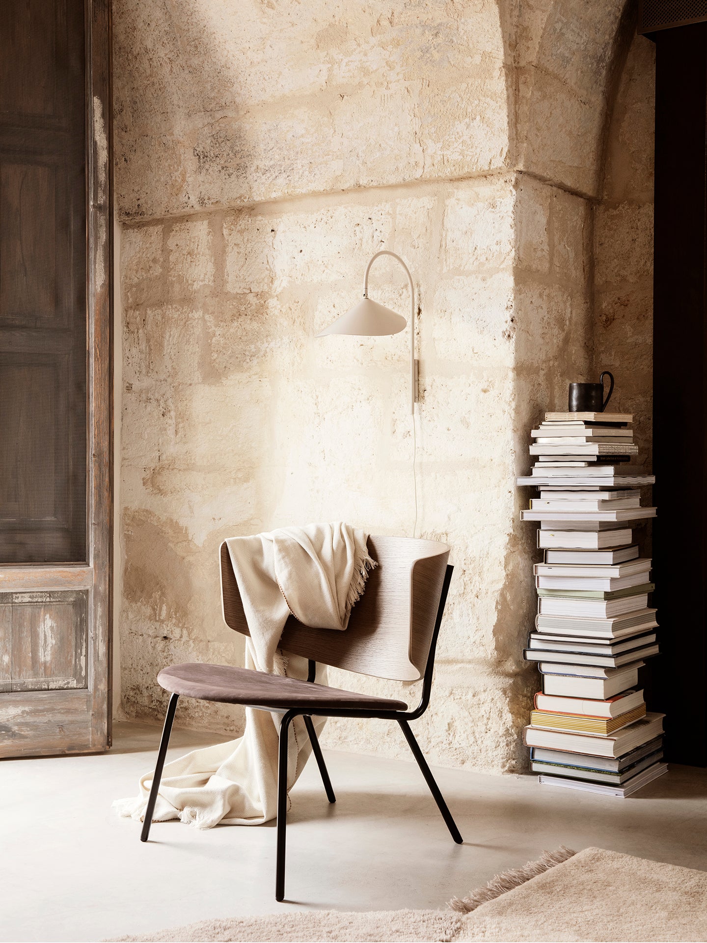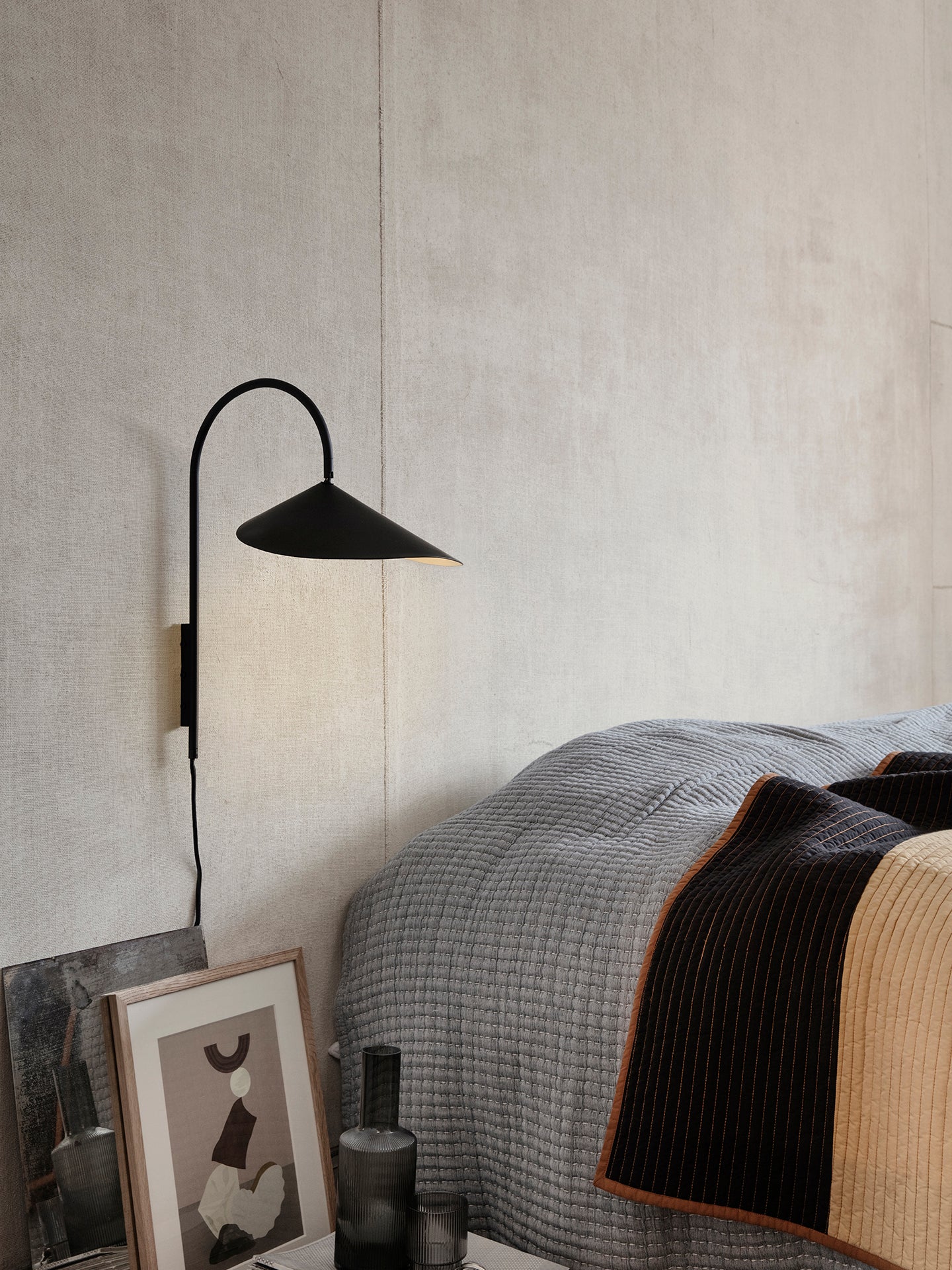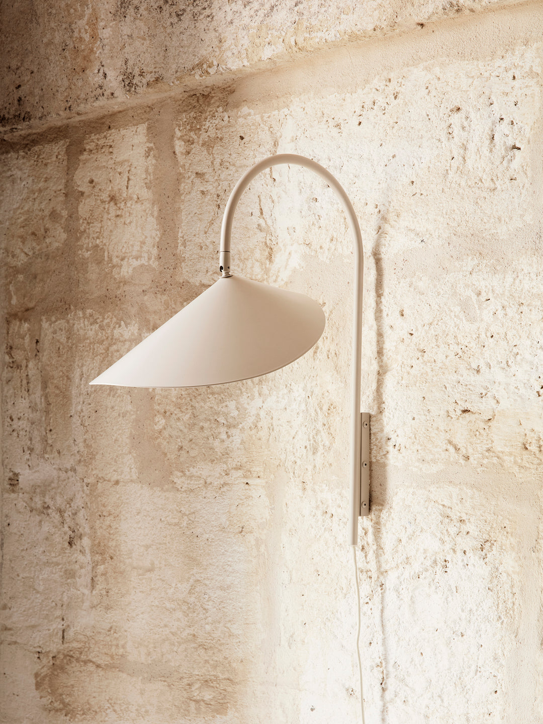 O aplique de parede Arum é caracterizado pela sombra de forma orgânica suspensa do arco de metal curvo de maneira semelhante a uma folha. Com o interior fosco e esbranquiçado do abajur, o aplique fornece uma luz suave e uniformemente distribuída, e o abajur pode ser ajustado para garantir condições ideais de luz em todas as situações. O aplique é fornecido com um suporte de parede, por isso é fácil de montar na parede. O aplique também tem um interruptor.