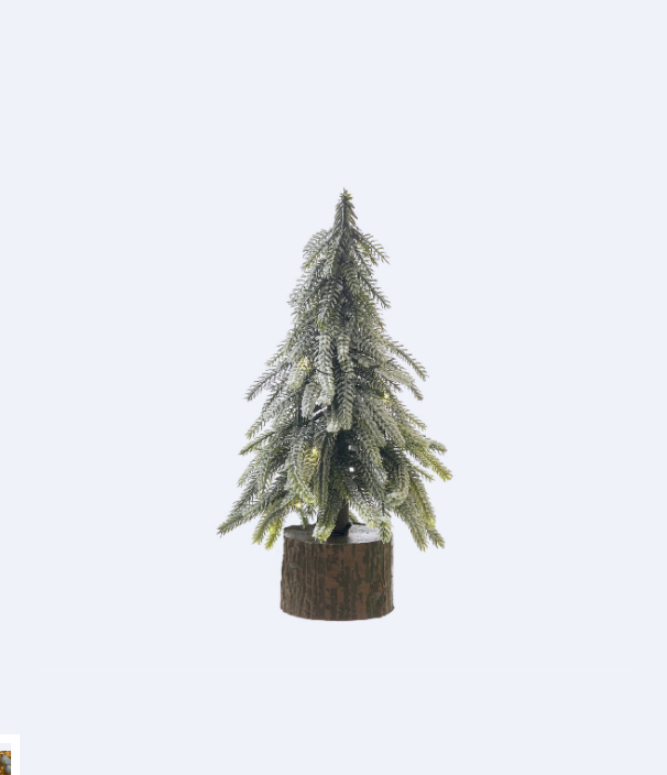 Árvore com neve em base de madeira. Detalhe muito interessante para colocar numa estante, consola ou aparador. Funciona muito bem num balcão também.