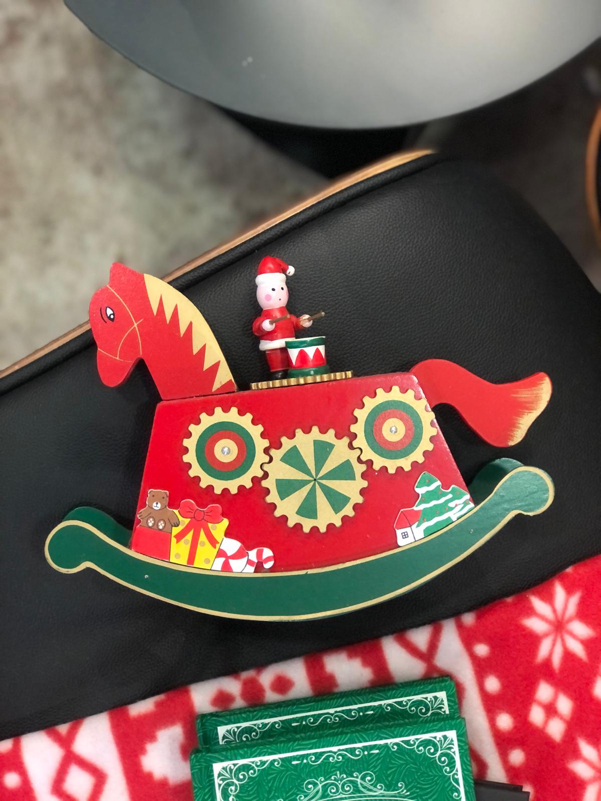 Baloiço Cavalinho com apontamentos dourados é um baloiço com corda feito em madeira. Um artigo que nos transporta para o passado, onde os brinquedos eram feitos de madeira e eram referência nas decorações natalicias dos velhos tempos