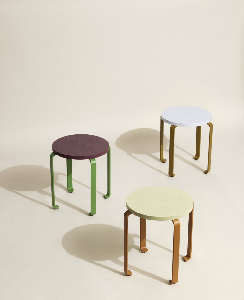 Chamamos este banquinho de Smile por várias razões! Dê uma olhada neste belo banquinho: A combinação de cor laranja e verde claro – Não podemos deixar de sorrir. Então olhe para as pernas de metal laranja com pés curvados: Você quase pode visualizar um canto ascendente da boca, certo? Que tal você? Este banquinho também desperta alegria em si? Sorria! Este banquinho empilha e o assento é feito de madeira certificada pelo FSC.