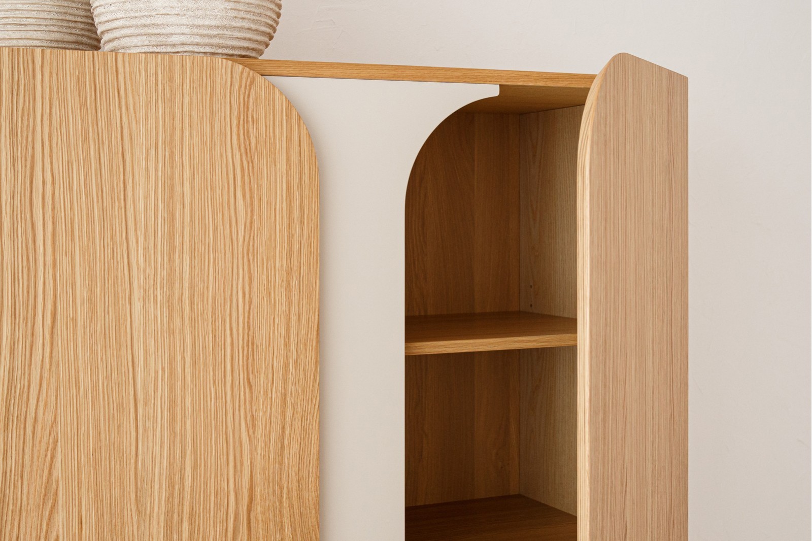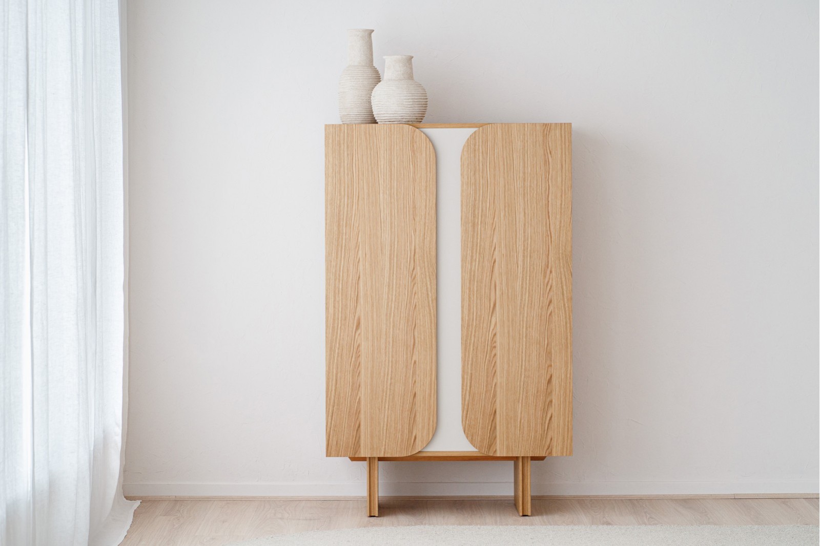 Elegância e durabilidade em perfeita sintonia com SHAPE. Este móvel apresenta um design delicado e subtil, feito em madeira de carvalho, dando um toque de aconchego e sofisticação a qualquer ambiente.