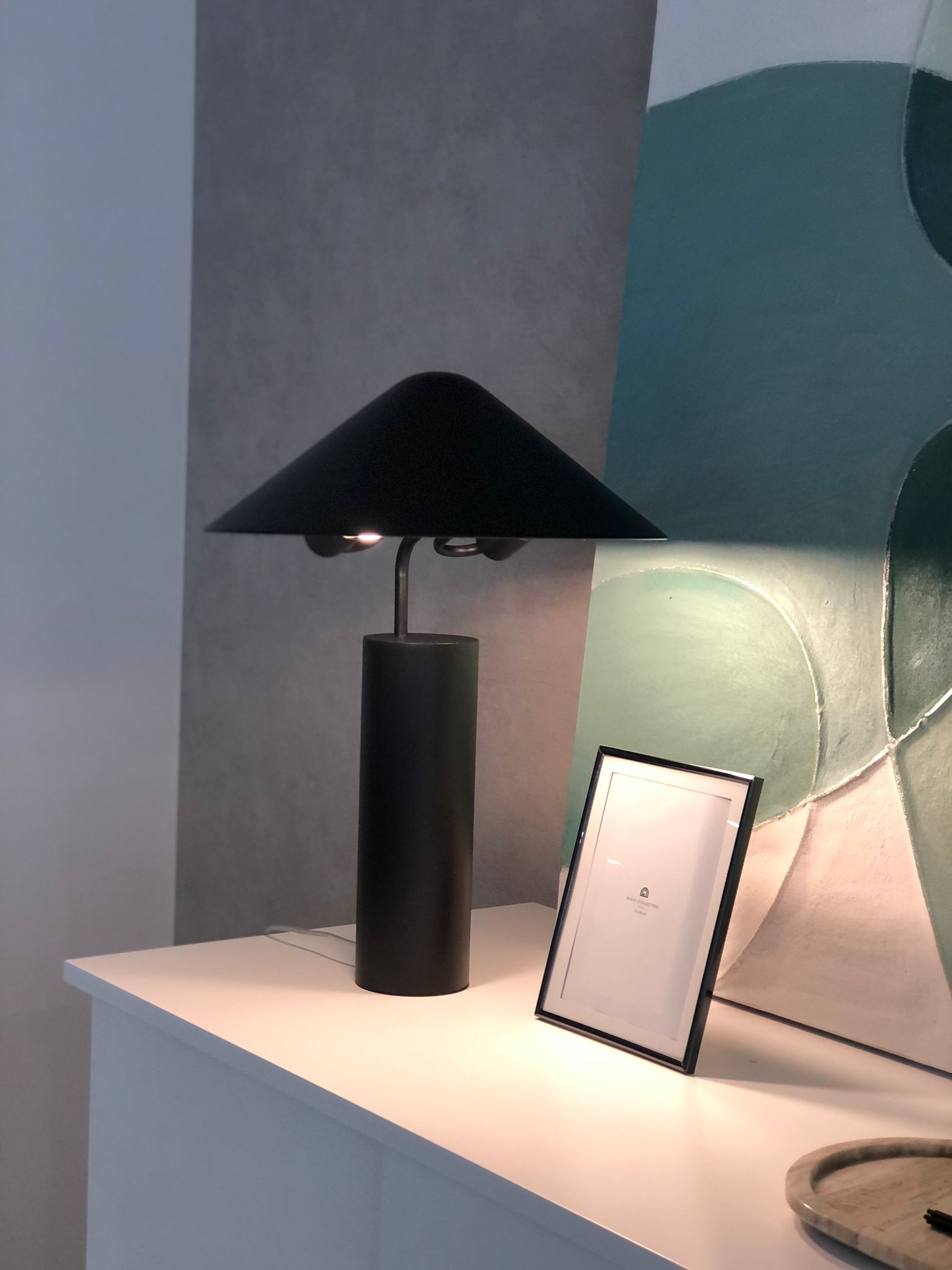 Candeeiro de mesa em metal preto.
