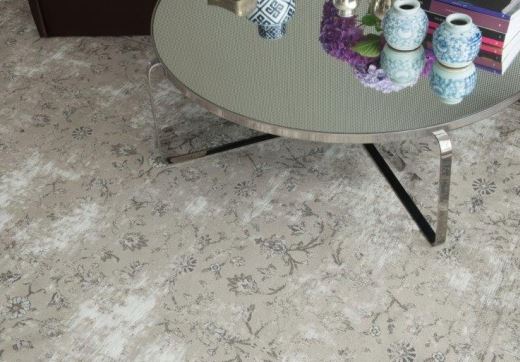 A suavidade do chenille de viscose e algodão em tons discretos e padrão floral desbotado, combinam harmoniosamente no tapete MANTRA que se apresenta como um acessório must have na decoração diferentes estilos.