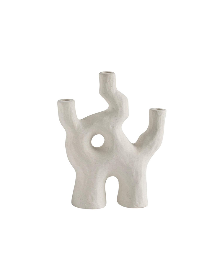 Castiçal em cerâmica texturada de cor BRANCO CRU, apresenta uma textura rugosa ao toque.