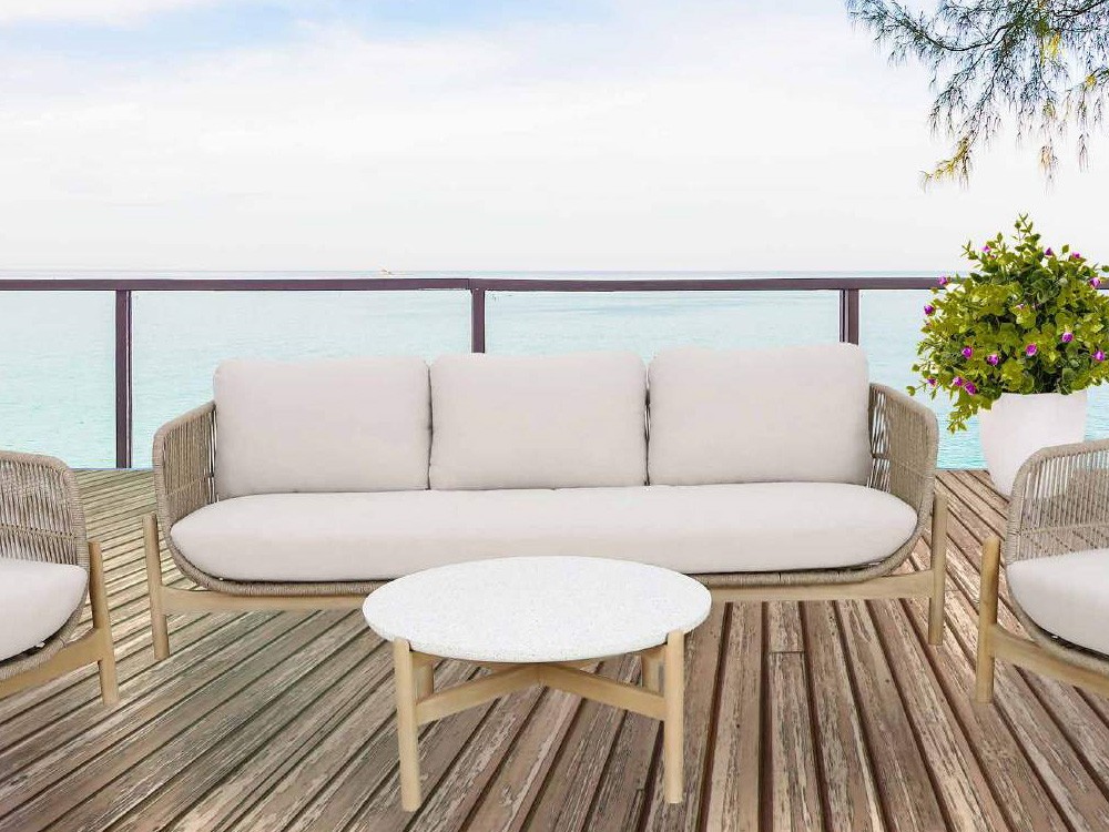 – Dimensões do sofá de 3 lugares: 232 x 80 x 79 cm, estofado em tecido Olefine bege.