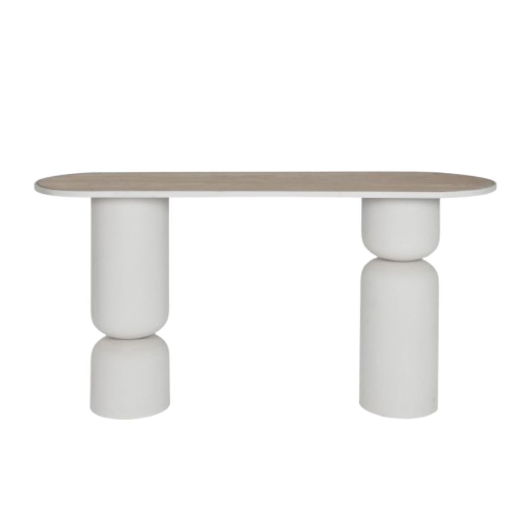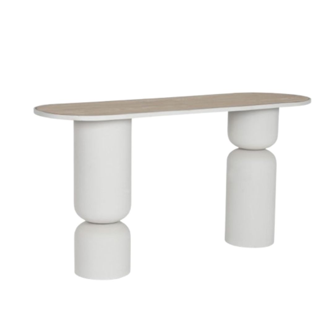 Consola de Metal na cor branca, com efeito rugoso. Cria um efeito minimalista que encaixa facilmente em qualquer espaço