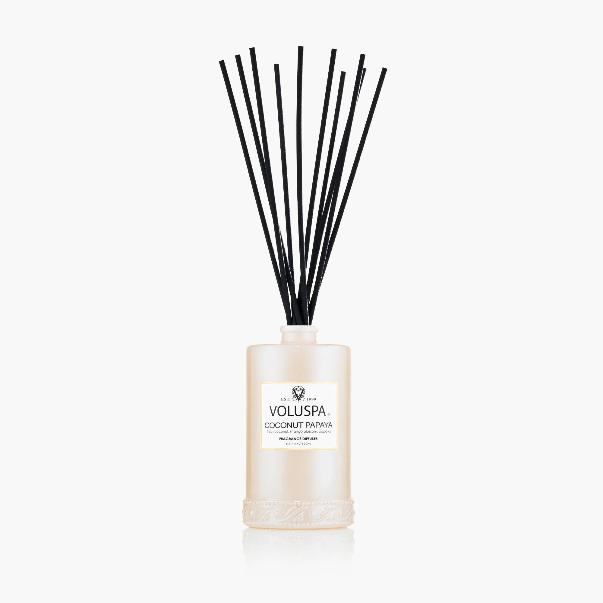 Abrigue-se contra uma onda de calor implacável com esta mistura de mamão papaia doce e polpudo, pêssegos brancos jovens e frutas tropicais. Servido quase congelado na casca de um coco, cercado por flores tropicais, perfumando docemente cada gole gelado.