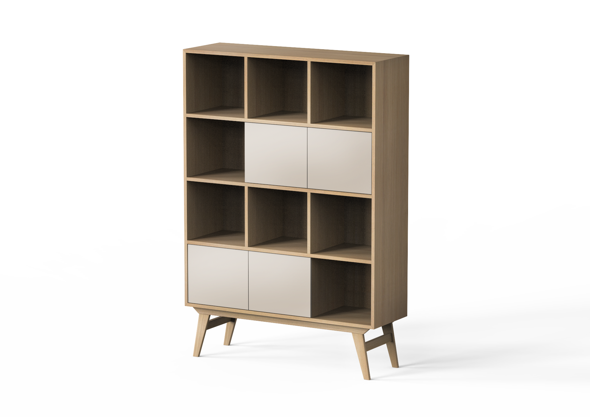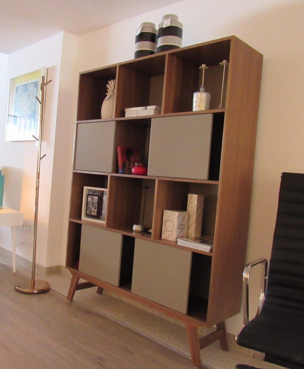 Estante “Marilyn” em carvalho e lacado, com 12 divisões ideal para decorar ou colocar os seus livros, as portam mudam de posição. Possibilidade de personalizar madeiras ou lacar.