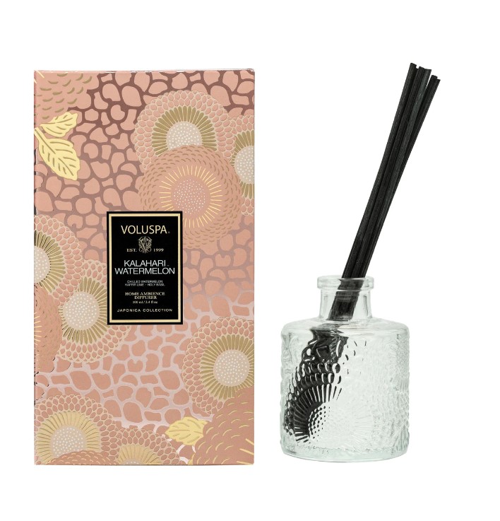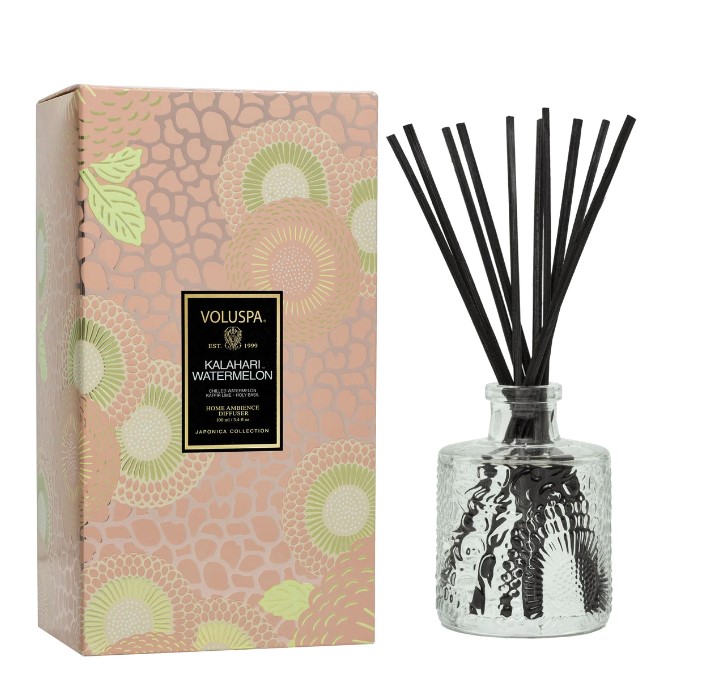 O óleo difusor perfumado de Voluspa é derramado à mão num recipiente de vidro em relevo para um toque sutil de decoração elegante. Crie a assinatura da sua casa, com uma fragrância sempre ligada nos espaços, e desfrute por 4-6 meses. Inclui palhetas de rattan para fragrância poderosa sem sobrecarregar.