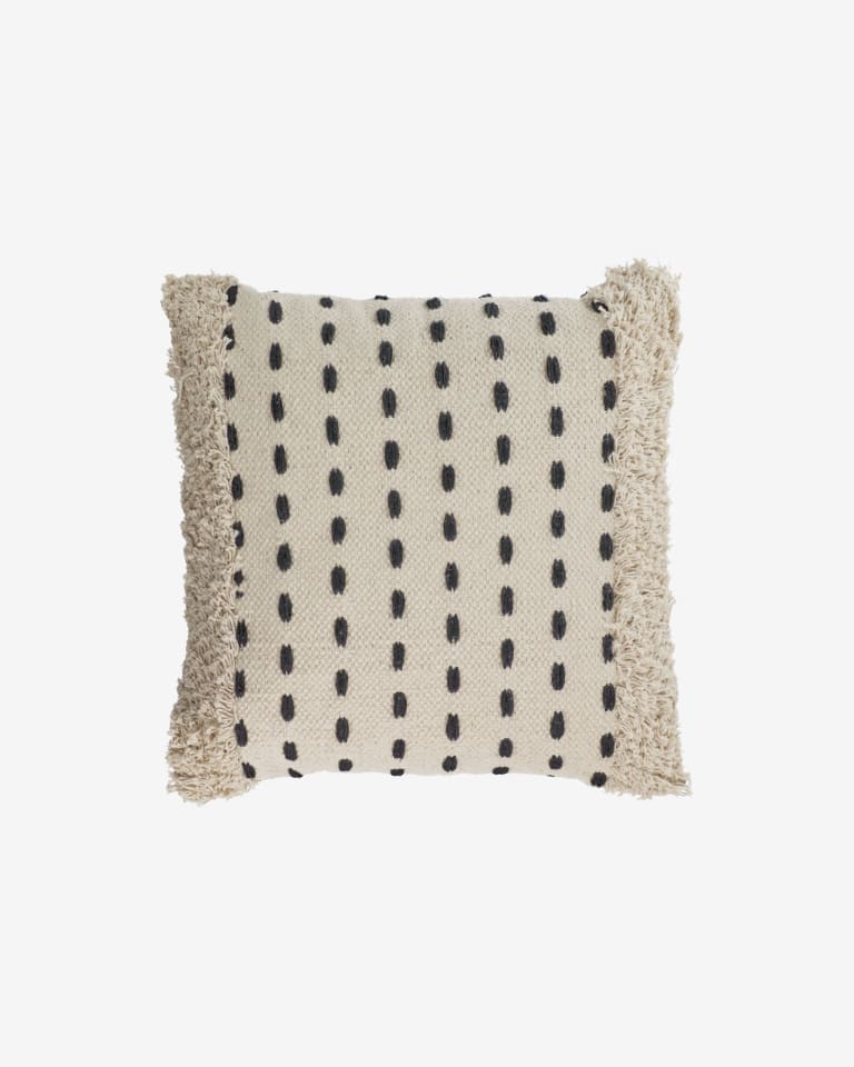 Fronha sem enchimento em algodão natural e apontamentos pretos.