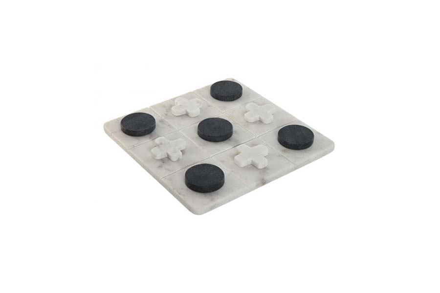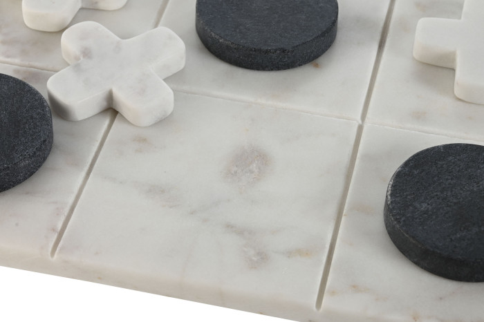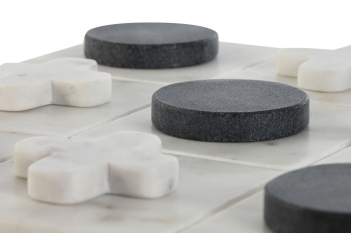Feito em mármore preto e branco, este jogo combina design minimalista com um toque sofisticado, tornando-se uma peça decorativa e funcional.