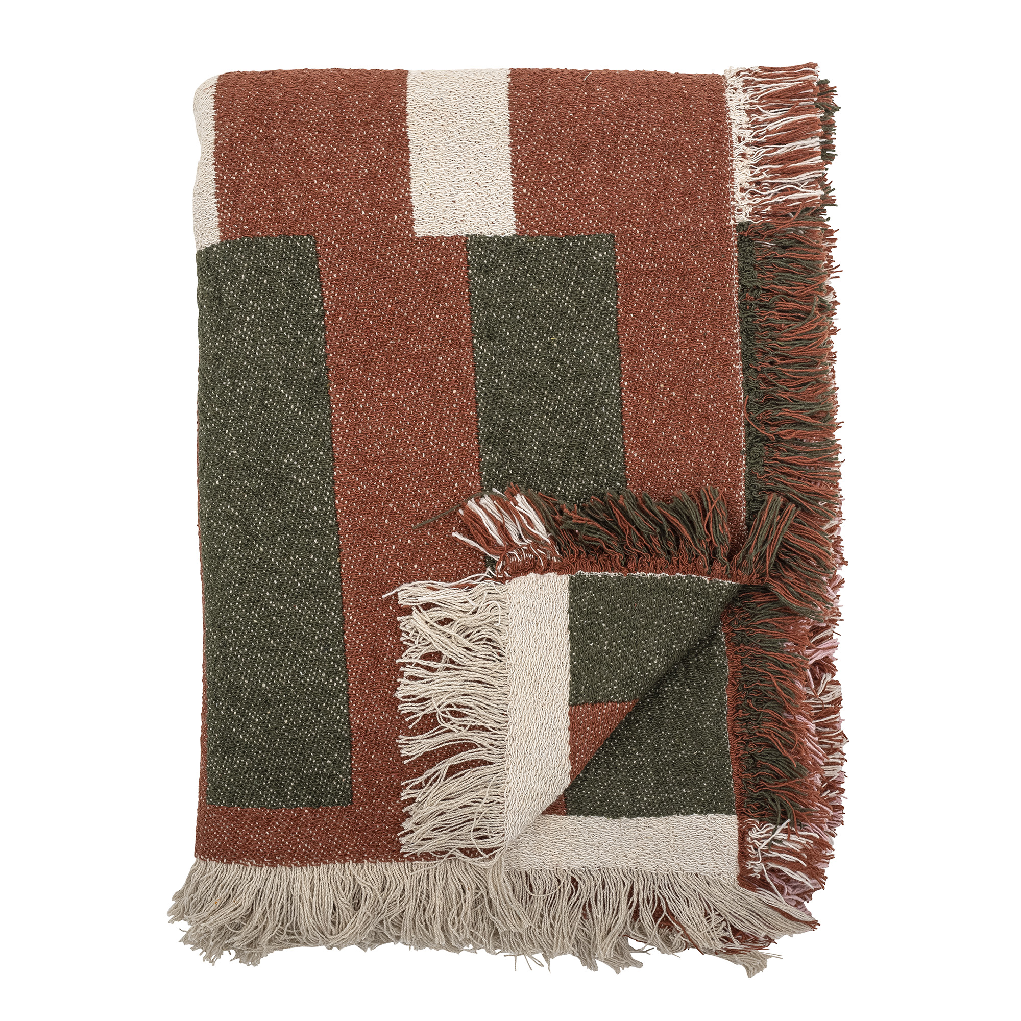 A manta York é feita de algodão reciclado em lindas cores. O xadrez é tecido num padrão geométrico em tons de vermelho, verde-escuro e lilás. Possui pequenas franjas nas pontas que criará uma atmosfera aconchegante e acolhedora a qualquer ambiente.