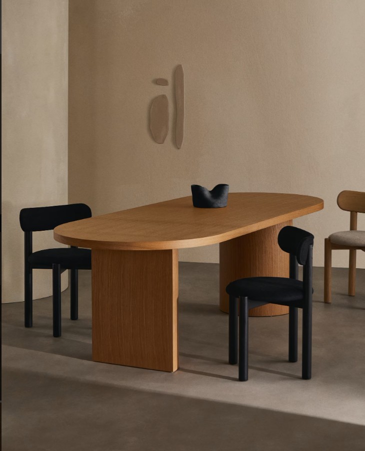 Neally é o equilíbrio perfeito entre simplicidade e versatilidade. O seu design escultural de linhas curvas e retas em chapa de carvalho revela os veios da própria madeira, podendo as pernas ser montadas em duas posições, criando assim o seu próprio design.
