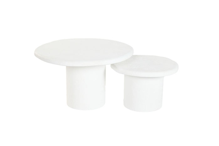 Concebida em madeira manga, com acabamento branco texturado e forma orgânica. Um toque imperfeito que traz autenticidade e elegância natural ao seu espaço.