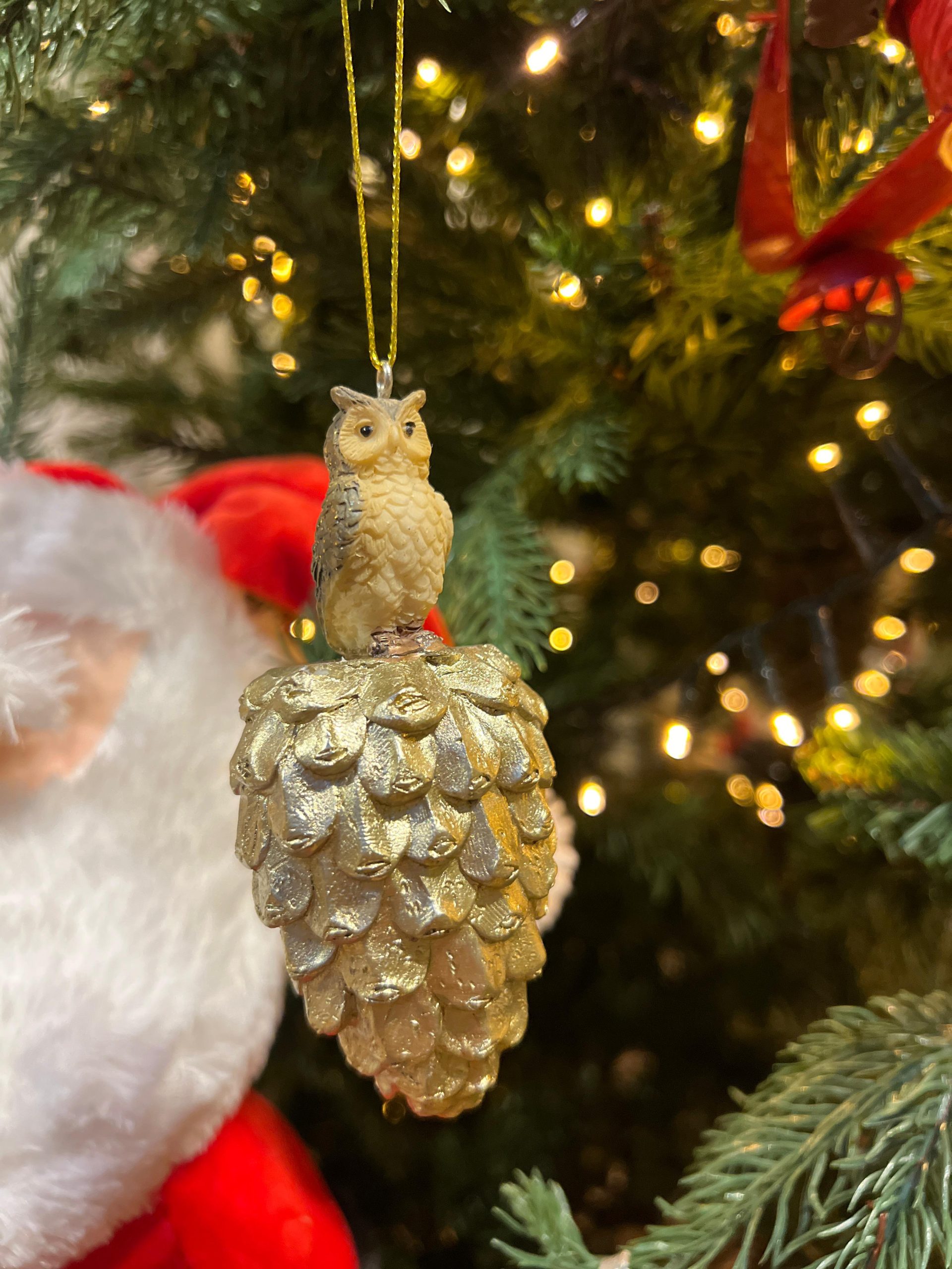 No mundo encantado com mocho, pinhas e cogumelos.