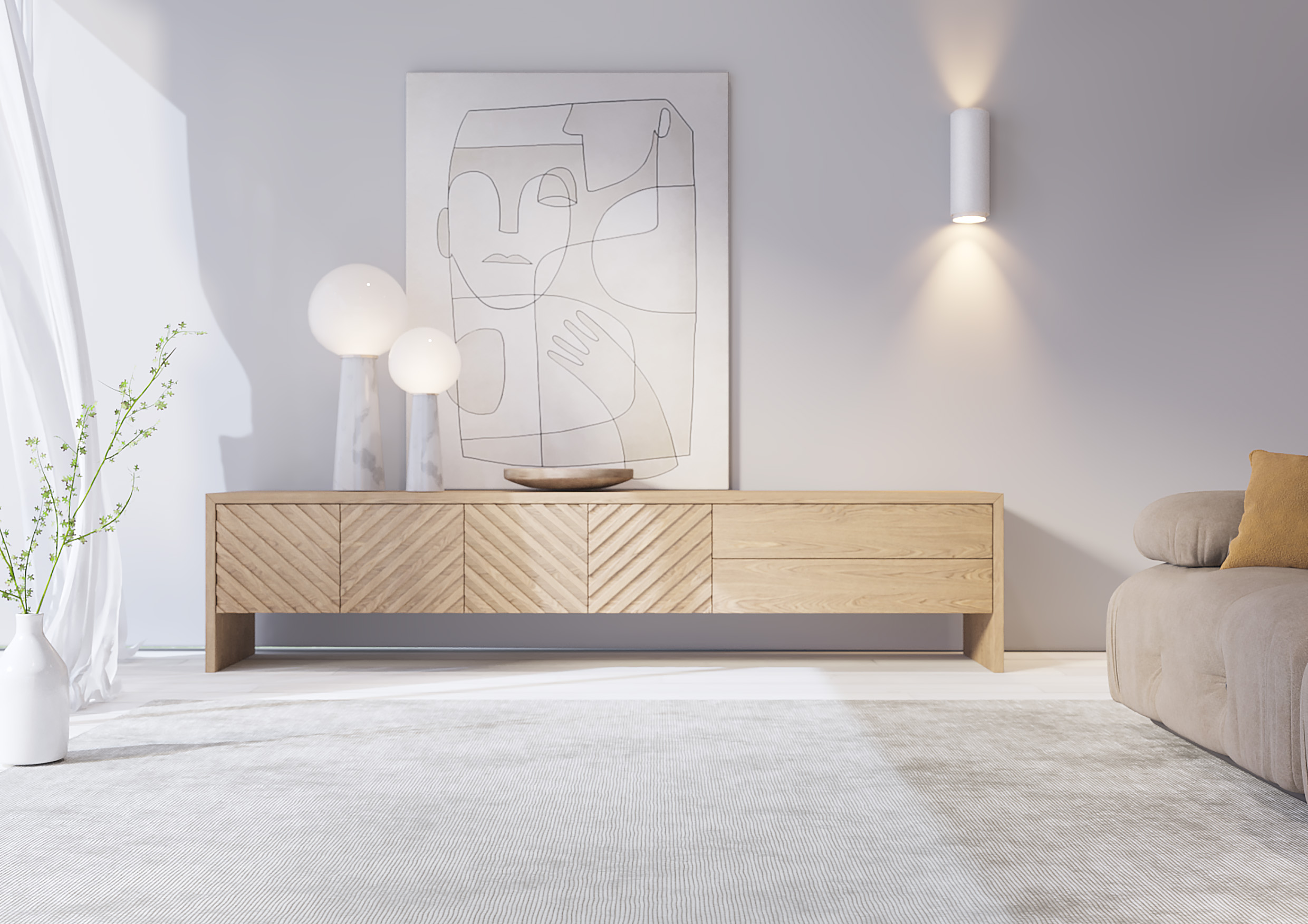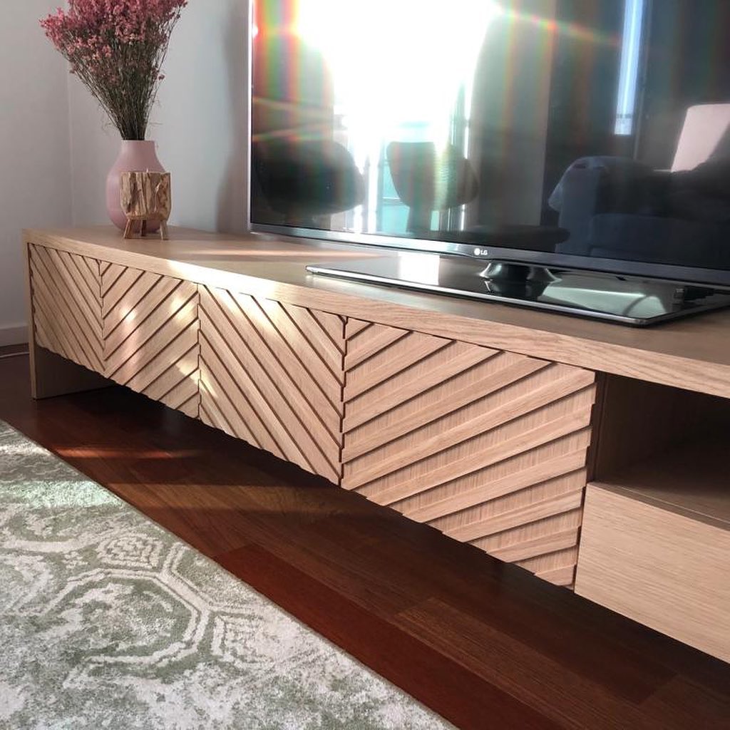 Móvel de tv em contraplacado marítimo folheado a madeira/lacado.