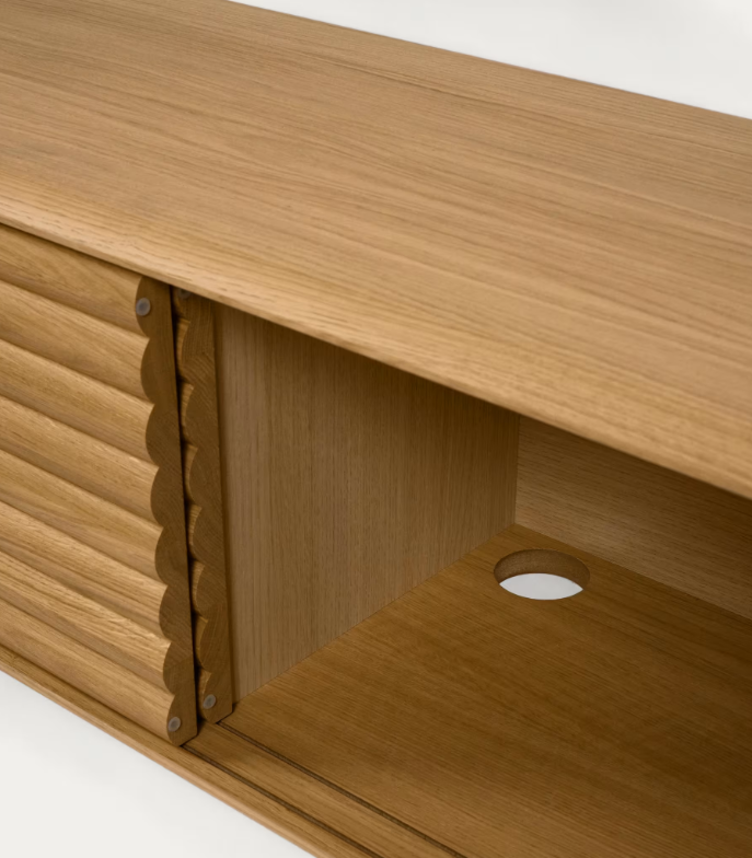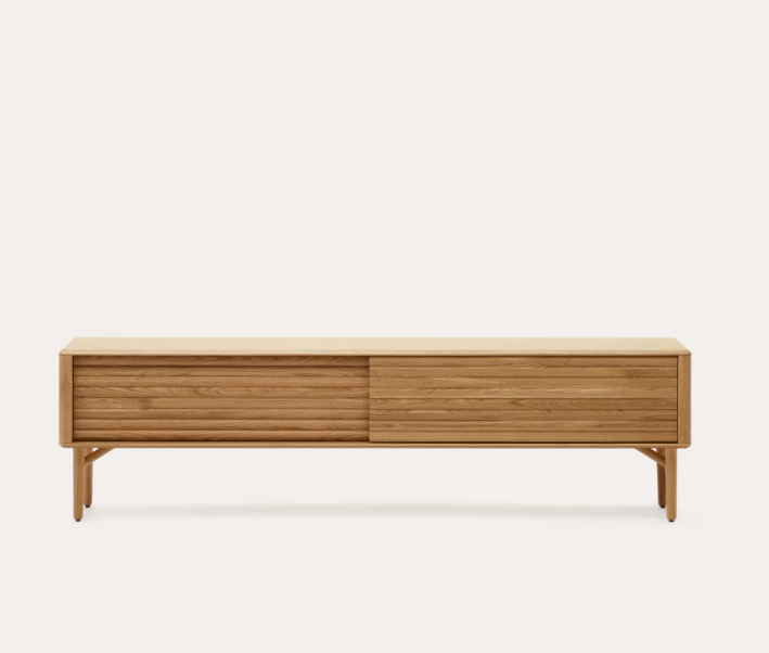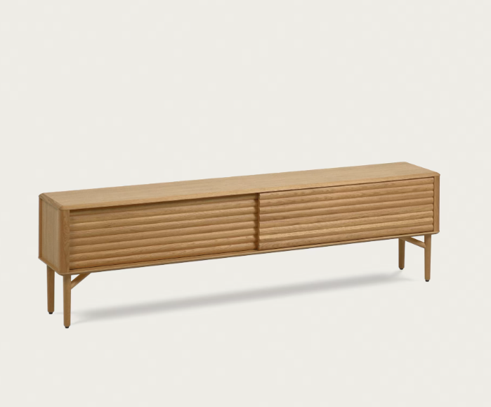 O Móvel TV Lenon é feito em madeira maciça e chapa de carvalho. Uma peça naturalista e intimista.