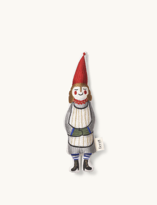 De acordo com o folclore nórdico, os nisser são pequenas criaturas parecidas com elfos que vivem secretamente em casas e celeiros e são particularmente ativos durante a época do Natal. Um nisse bem tratado atuará como guardião da família e pode até começar a ajudar nas tarefas domésticas, enquanto um nisse rejeitado é conhecido por causar travessuras onde quer que vá. Carol é uma elfa simpática bordada em algodão orgânico com certificação GOTS e preenchida com poliéster reciclado. Encontre para ela um lar debaixo da sua árvore de Natal ou no parapeito de uma janela aconchegante, onde ela ajudará a espalhar a alegria festiva do feriado para toda a família