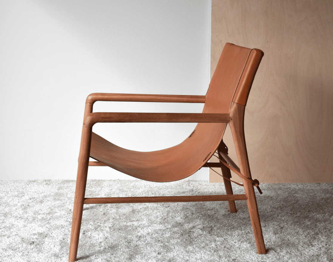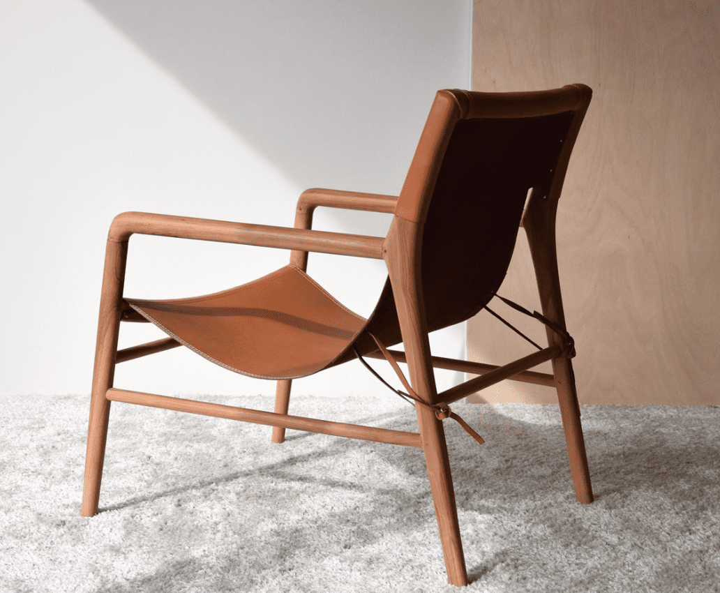 poltrona colombo com estrutura de madeira de teca e assento em couro | devido ao uso de materiais naturais, pode haver variações de cor de uma peça para outra e marcas e imperfeições de outro modo da pele natural.