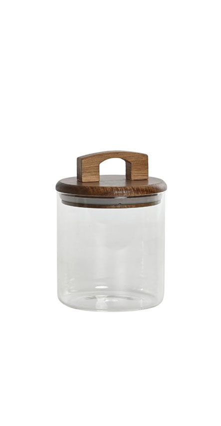 Pote em vidro com tampa em acácia cor natural. Torne a sua despensa ainda mais bonita e organizada com esta peça.