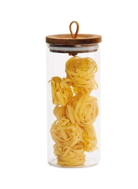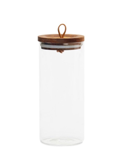 Pote em vidro com tampa em acácia cor natural. Torne a sua despensa ainda mais bonita e organizada com esta peça.