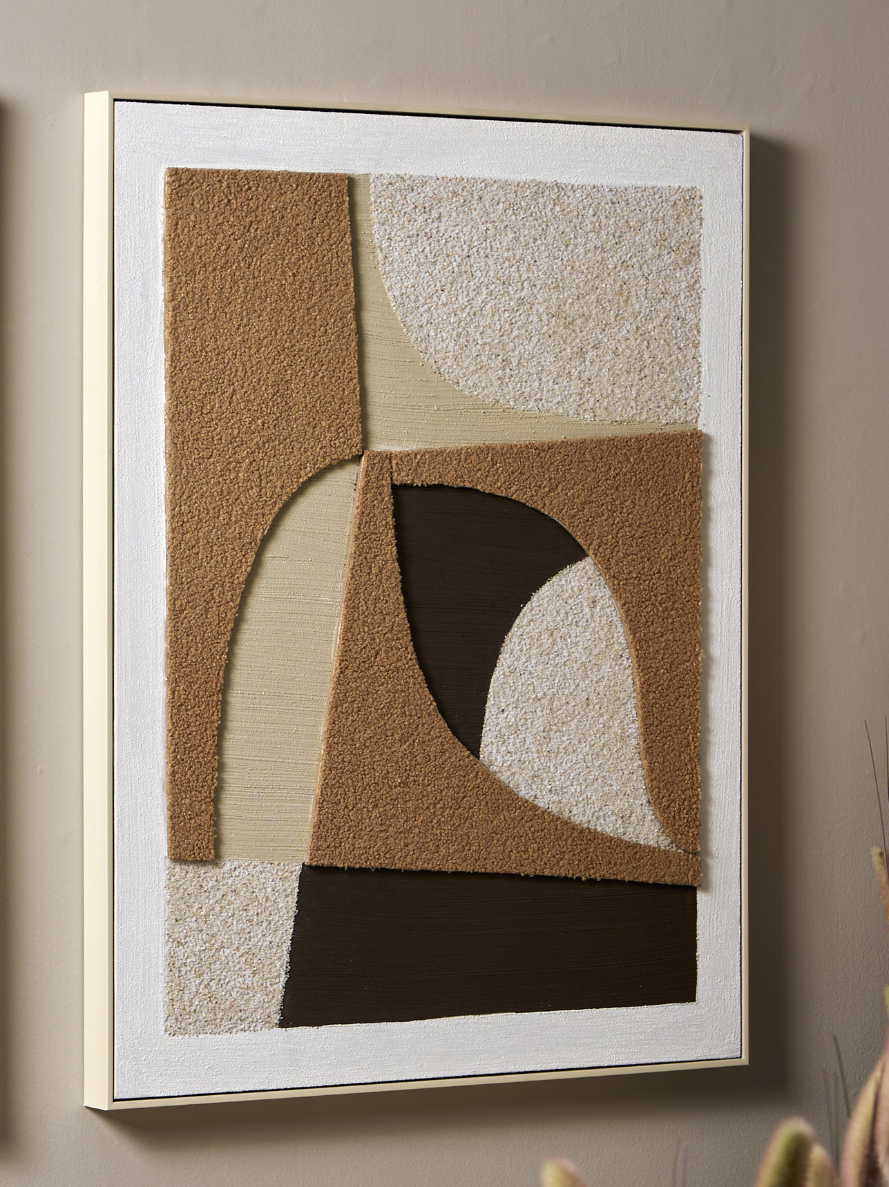 A melhor maneira de decorar o seu interior sem comprometer o seu estilo é pendurar uma peça ornamental na parede. Esta tela minimalista em tons marron e creme complementará perfeitamente uma sala ou quarto em qualquer decoração. Além disso, uma estrutura correspondente com ganchos embutidos na parte traseira torna a instalação extremamente fácil.