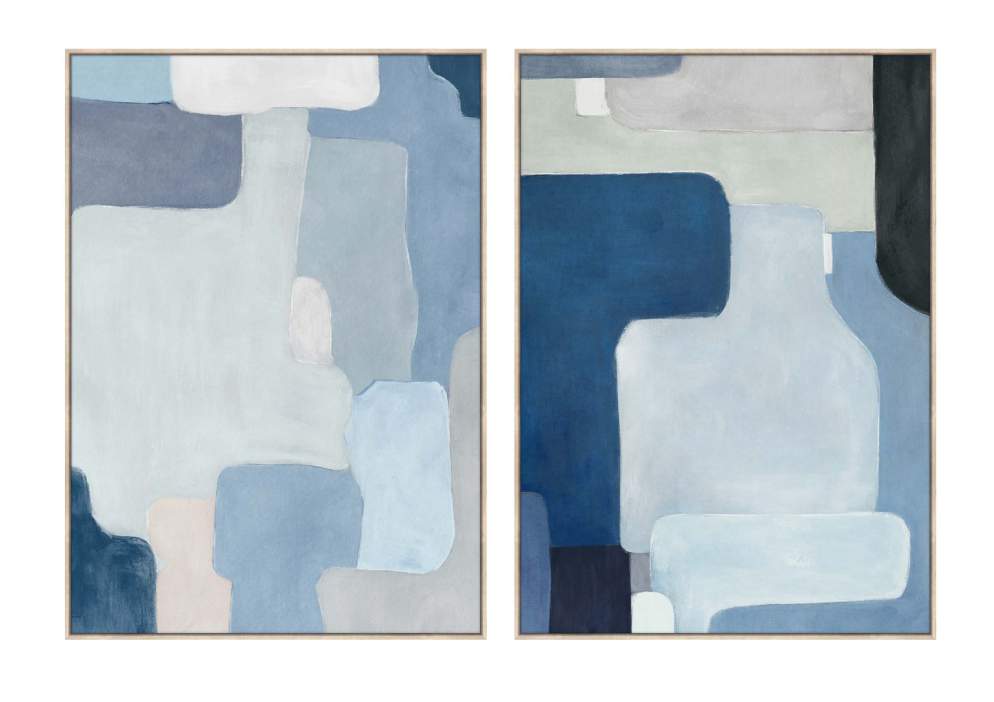 Esta pintura abstrata contemporânea, é uma pintura que evoca a modernidade em cada detalhe. Esta tela apresenta uma sobreposição harmoniosa de tons azuis, criando uma composição visualmente cativante. Esta peça inclui uma elegante moldura de madeira.