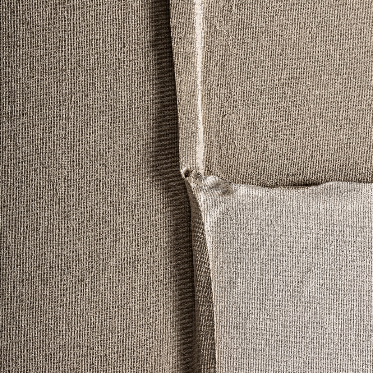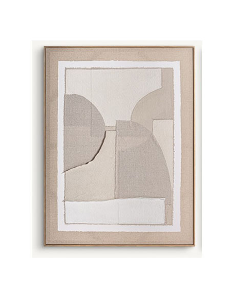 Daray I, quadro em tons bege e taupe, feitos à mão, estilo contemporâneo. Combinado com madeira de pinho.