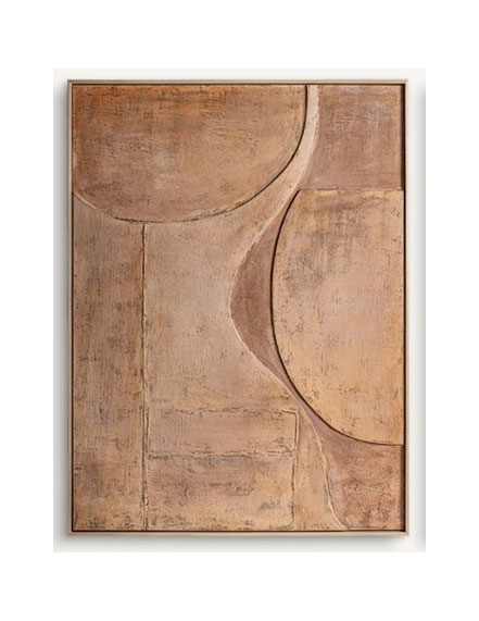 Quadro em tons castanhos feitos à mão, estilo contemporâneo. Fabricado em lona, ​​combinado com madeira de pinho.