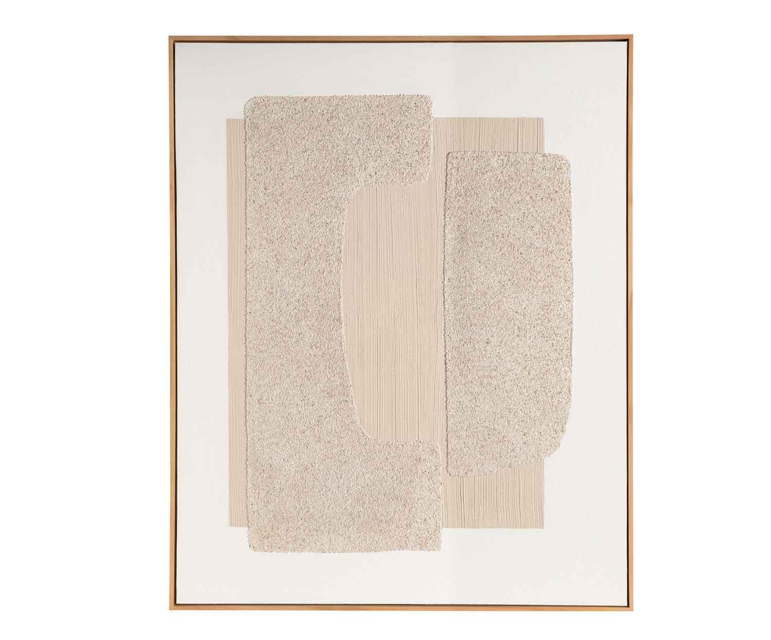 Este quadro destaca-se pelas suas texturas e cores suaves. Um tema abstracto numa moldura de pinho. Traz consigo uma sensação de tranquilidade que se reflectirá no local onde o colocar. Ficará lindamente em qualquer espaço da sua casa.