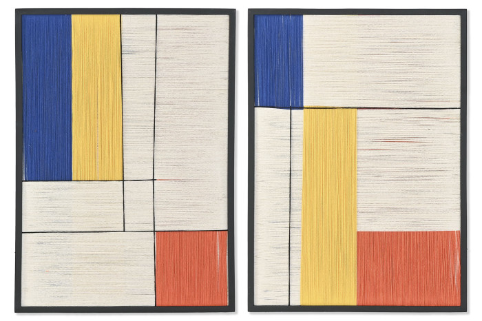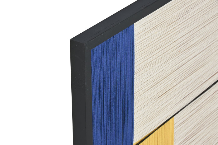 Quadro com textura têxtil e design geométrico, inspirado no estilo modernista. As cores primárias contrastam com o fundo neutro, criando uma composição que capta o olhar sem pesar no ambiente. Ideal para dar vida a uma parede de entrada, destacar uma zona de leitura ou complementar um aparador minimalista na sala. Para um look mais arrojado, compre o conjunto e coloque-os lado a lado; para um efeito inesperado, experimente pendurá-los em alturas diferentes.