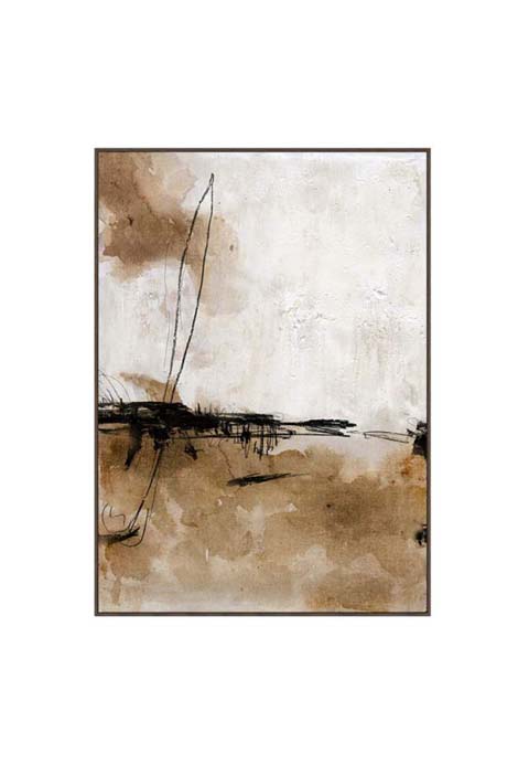 Esta pintura abstrata contemporânea, é uma pintura que evoca a modernidade em cada detalhe. Esta tela apresenta uma sobreposição harmoniosa de tons terra, criando uma composição visualmente cativante. Esta peça inclui uma elegante moldura de madeira.