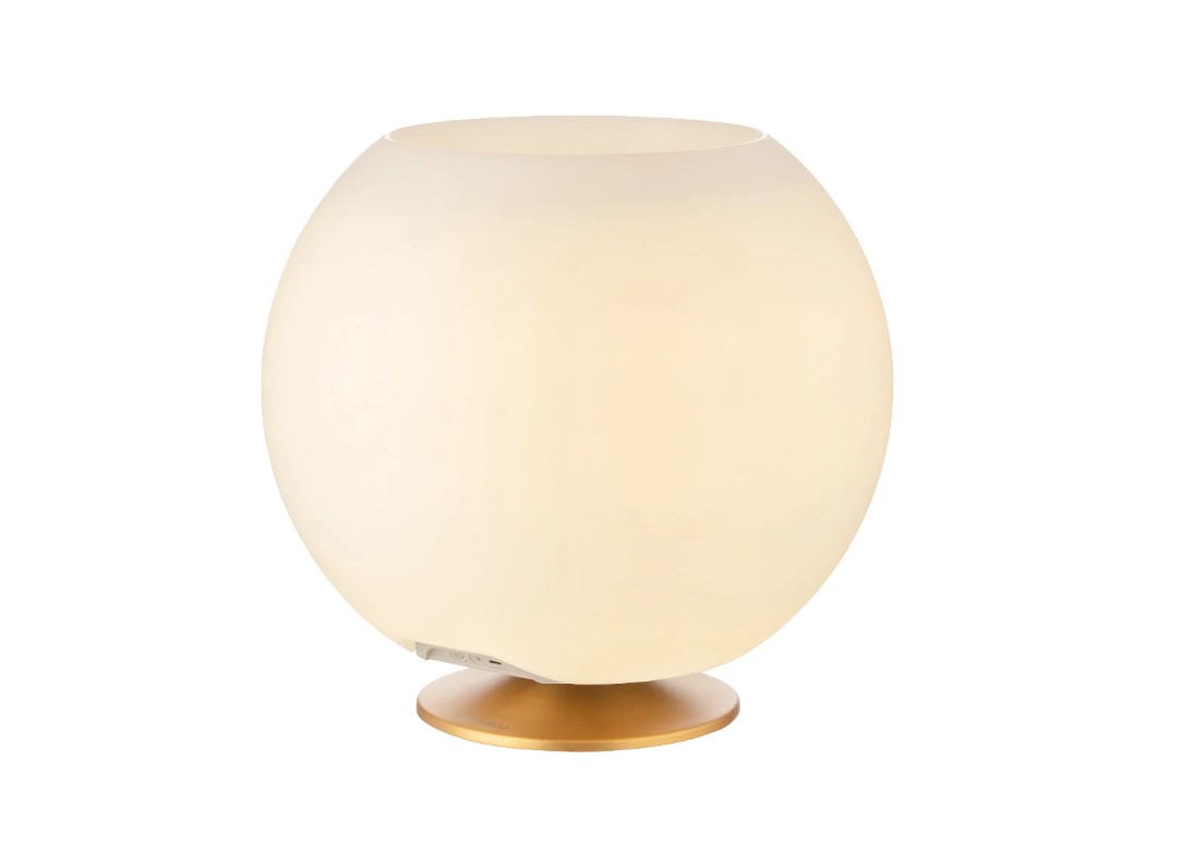 O Kooduu Sphere Brass é um alto-falante Bluetooth elegante e arredondado e luz LED regulável com suporte de bebida embutido tudo num só.