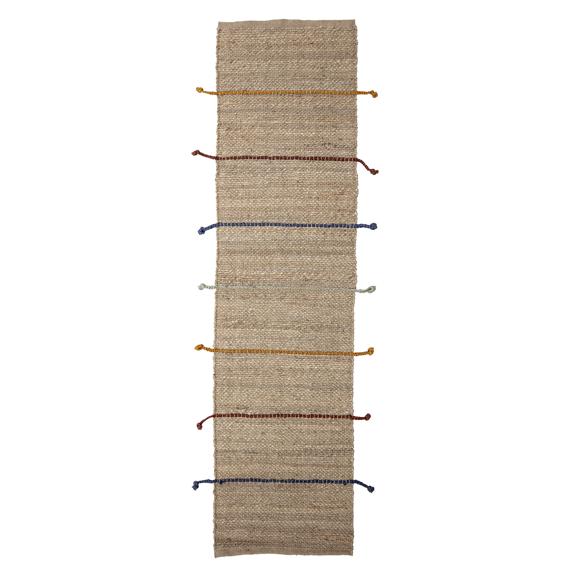 Tapete em tecido 100% juta com pequenos salpicos de cores divertidas.