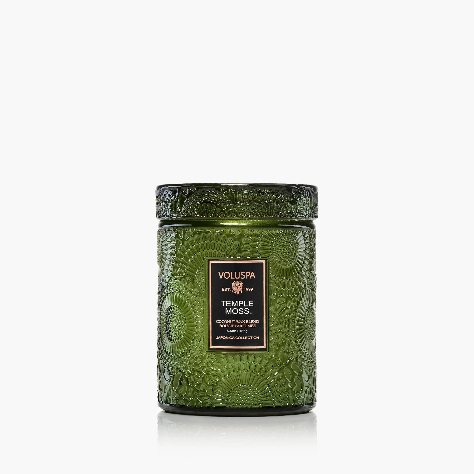 A Voluspa convida você a buscar conforto no chão da floresta. Fundido nas notas curativas de musgo fresco, folhas orvalhadas, pedras molhadas e sol quente espreitando através do matagal de galhos de Hinoki. A própria Mestre Perfumista, a Mãe Natureza, irá guiá-lo à tranquilidade através de imagens, sons e aromas rítmicos de sua floresta exuberante. Todos são bem-vindos para passear pelos jardins aromáticos de Temple Moss.