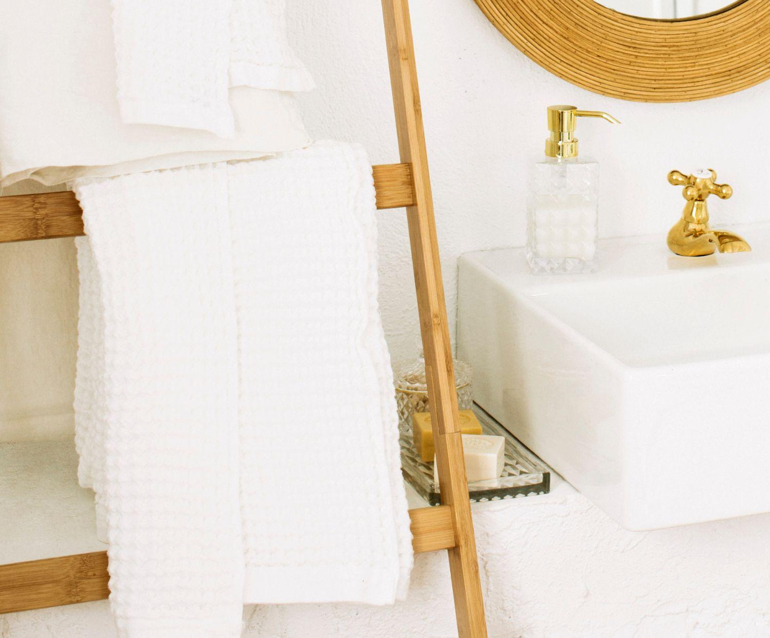 Escada em madeira bambu. Uma peça muito pratica e com design muito apelativo. Já não é preciso furar as paredes para termos um toalheiro lindo.