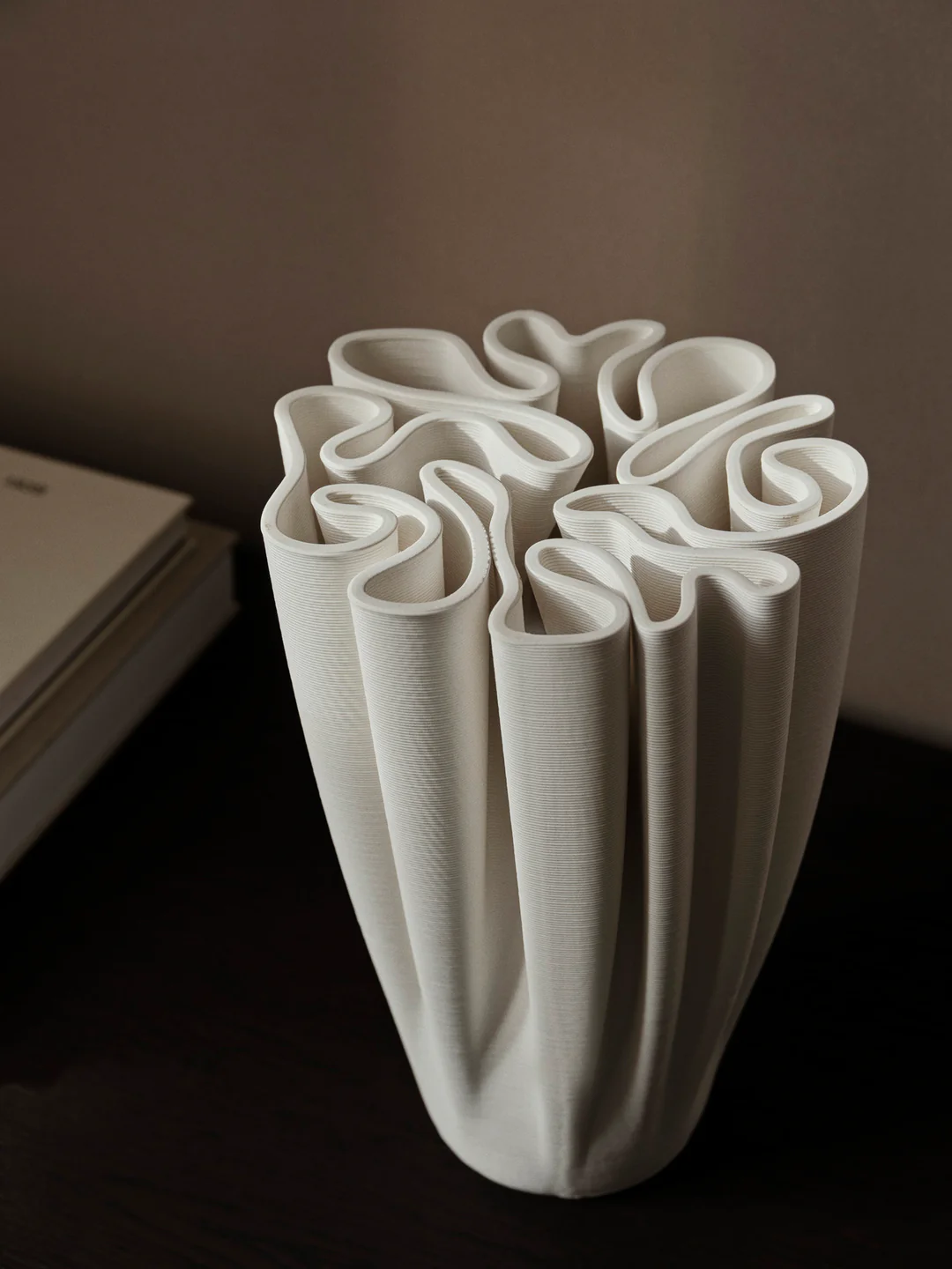 Esta variação compacta do Vaso Dedali ecoa os padrões elaborados de um “Dédales” ou labirinto, oferecendo a mesma fusão de arte e utilidade em um formato atualizado. Feito em cerâmica impressa em 3D, seu intrincado tampo labiríntico é visualmente impressionante e funcional, perfeito para organizar pequenos arranjos florais em um estilo volumoso inspirado em Ikebana.
