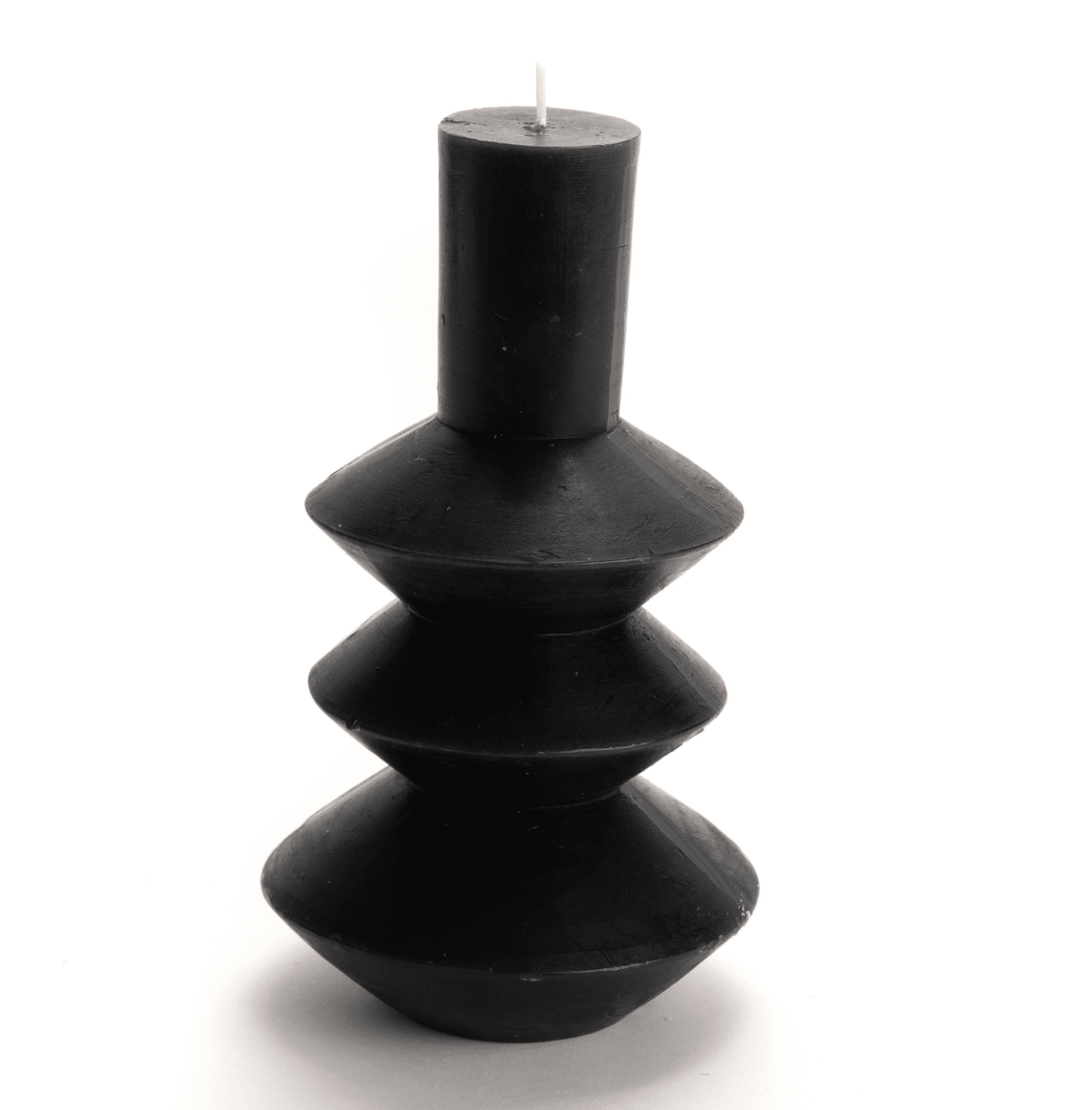 VELAS EM FORMA GEOMETRICA E SIMETRICA EM TOM PRETO.
