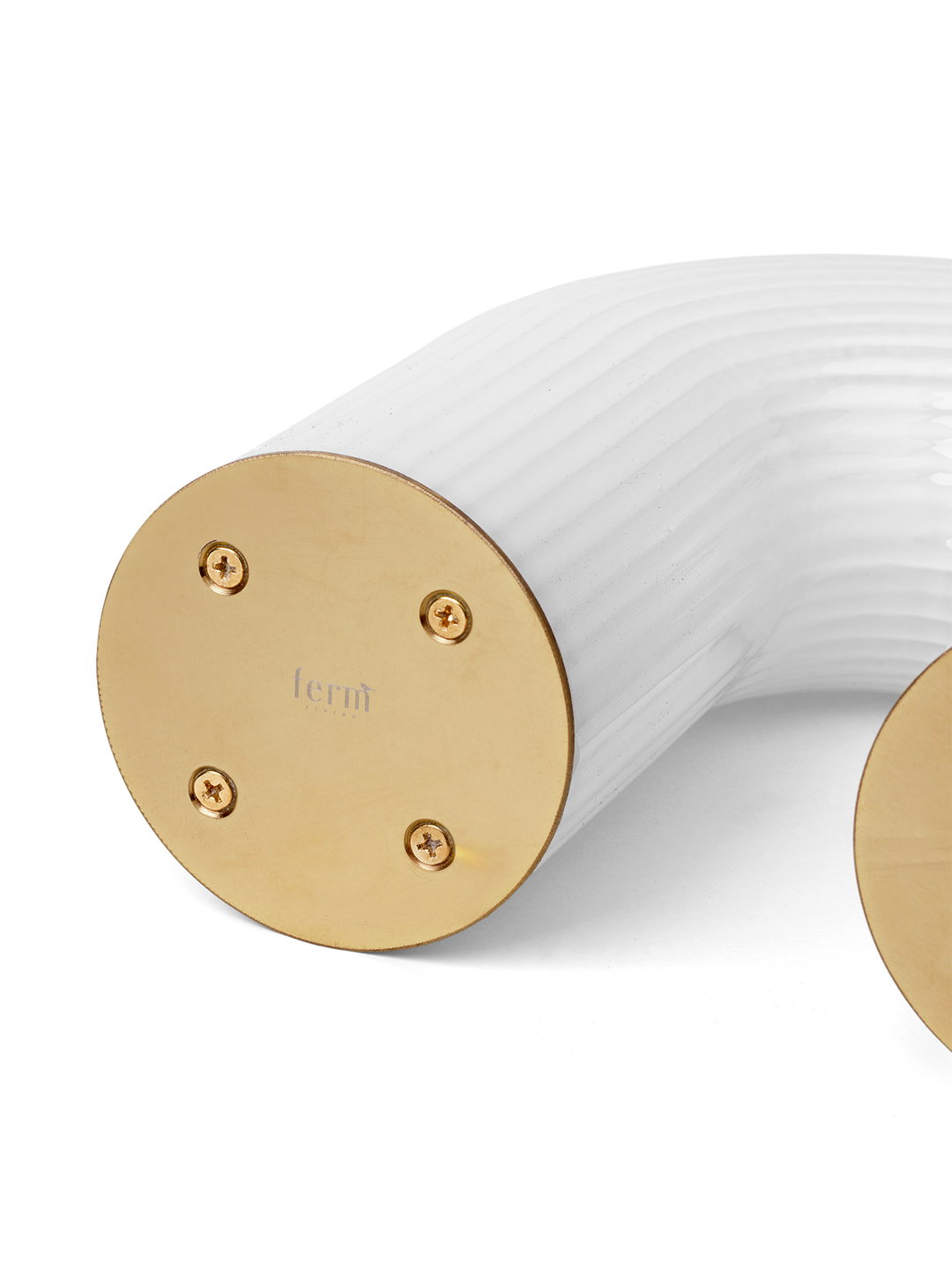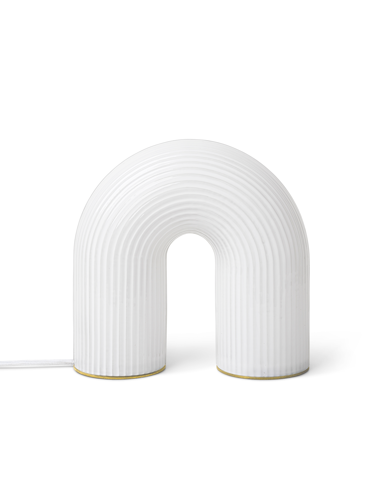 Uma luz ousada com um arco escultural que lembra colunas antigas, nossa lâmpada Vuelta é feita de vidro opalino com uma superfície ondulada que confere um apelo textural à peça. Concebido com uma fonte de luz LED que emite uma luz suave e difusa, também possui um interruptor de regulação de intensidade ajustável para o melhor controlo do ambiente. Use-o como uma lâmpada decorativa em um canto escuro ou em uma prateleira para iluminar uma coleção de livros.